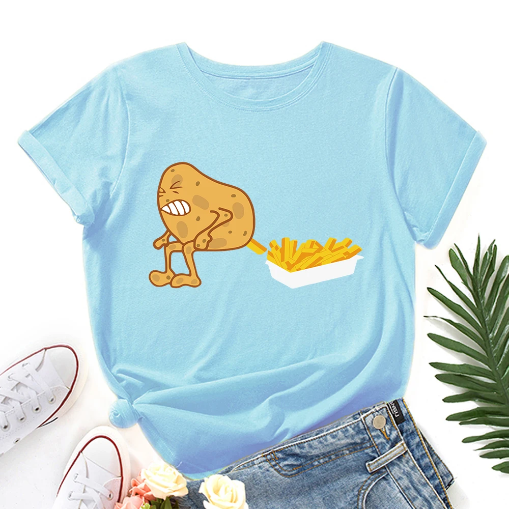 Футболка женская оверсайз с коротким рукавом, 100% хлопок, Графический Топ с принтом картофеля, кавайная одежда, на лето