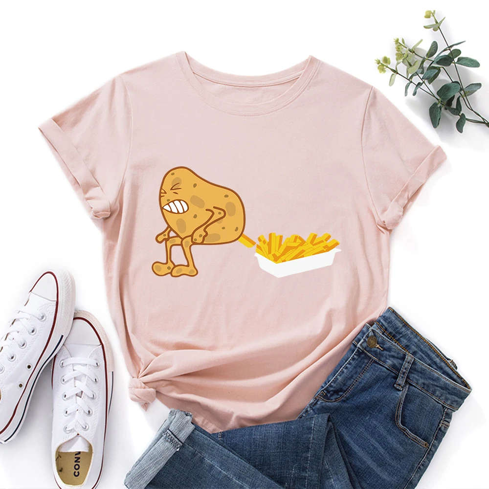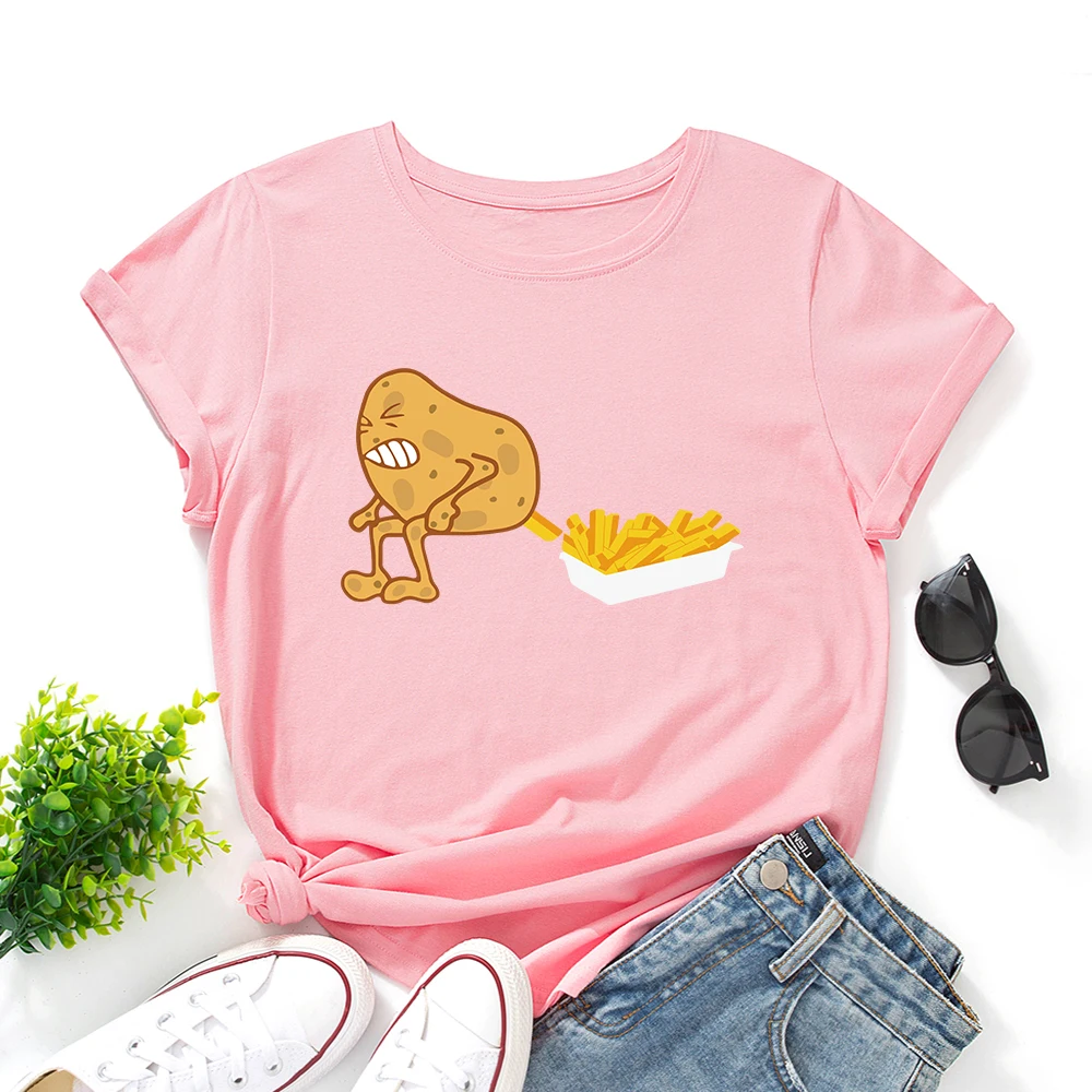 Футболка женская хлопковая с коротким рукавом, с рисунком картошки ...