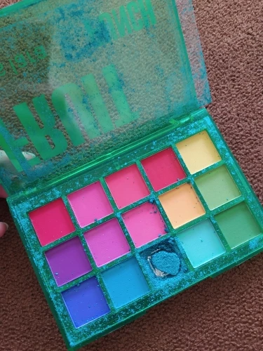 Пришла целая, ничего не рассыпалось, брала не для макияжа за качество теней не могу сказать) цвета яркие как на фото продавца.