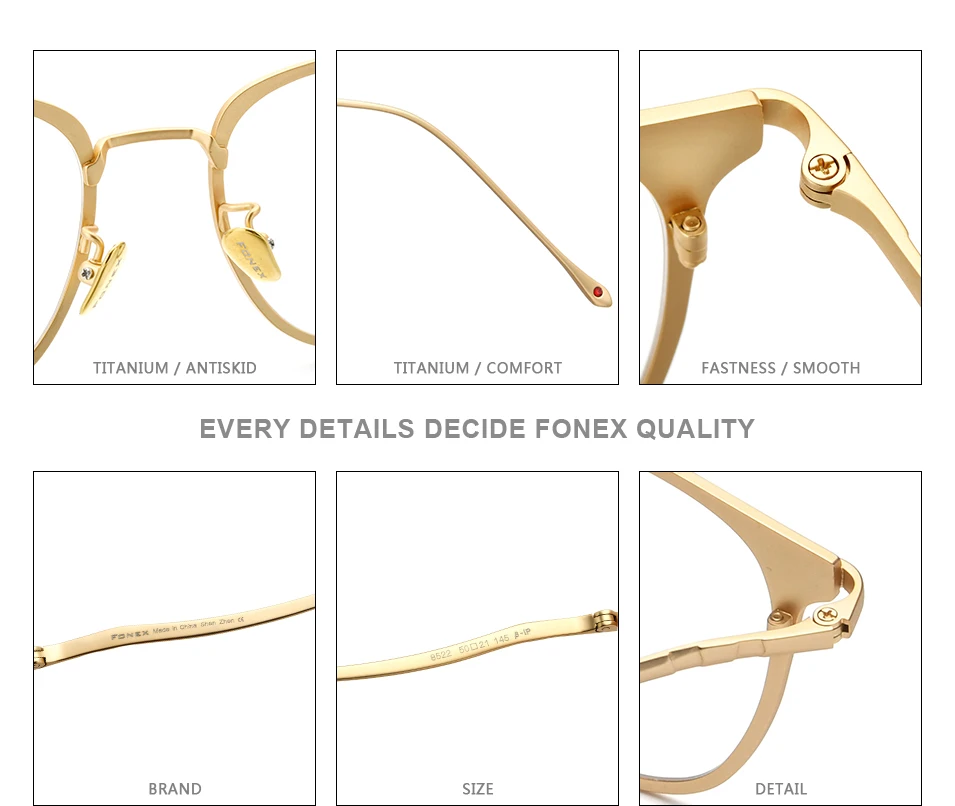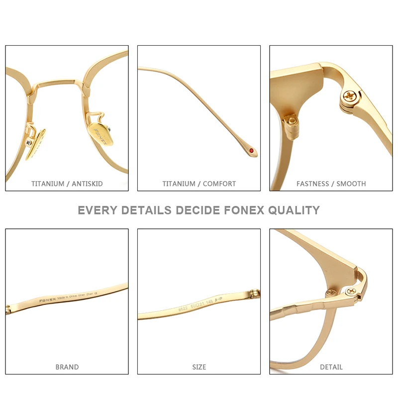 FONEX Очки мужские и женские из чистого титана в ретро-стиле, F85675