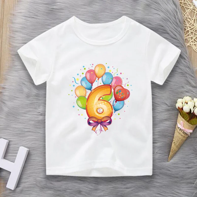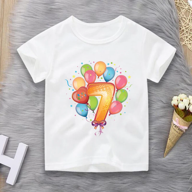 Новинка 2021, футболка с подарком на день рождения, одежда для маленьких мальчиков, забавная футболка с мультяшным принтом с цифрами 1-9, детские летние топы, футболка для мальчиков и девочек