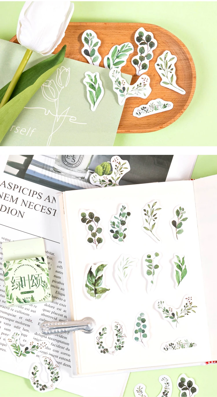 Винтажные стикеры Yoofun, этикетка с зелеными листьями и растениями кавай наклейки для скрапбукинга, украшение для дневника, DIY канцелярские принадлежности в стиле Ретро