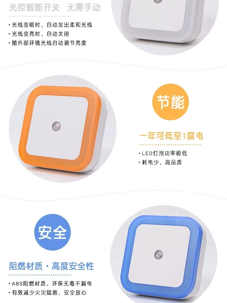 Ночник, светодиодный с мини-датчиком управления, вилкой для ЕССША, ...