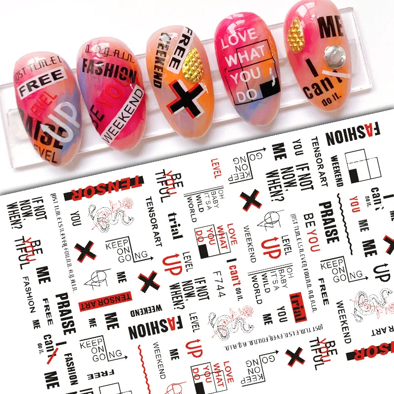 Прямоугольная наклейка для ногтей, клейкая наклейка s, черные слова...
