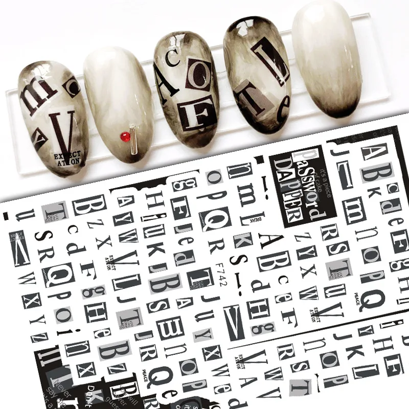 3D наклейки для ногтей, черный дизайн ногтей, готические буквы, лин...