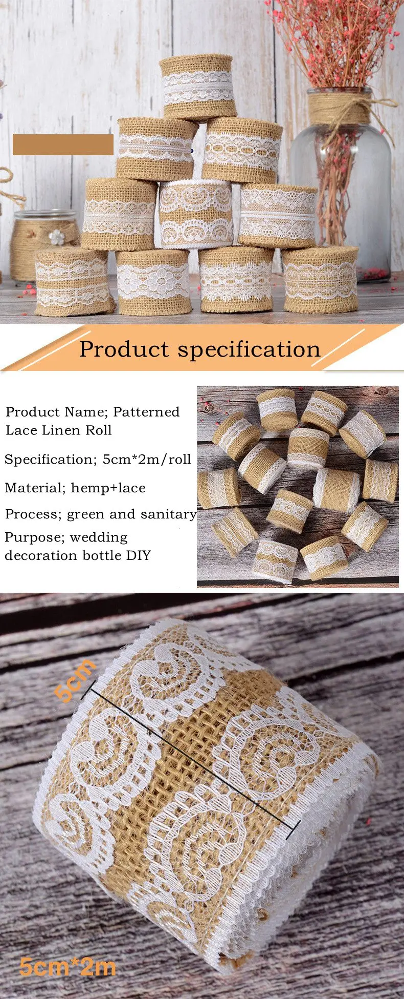 2 м DIY ручной работы на свадьбу, Рождество класса Мешковина в рулоне ремесла Цвет рулон кружевной ленты