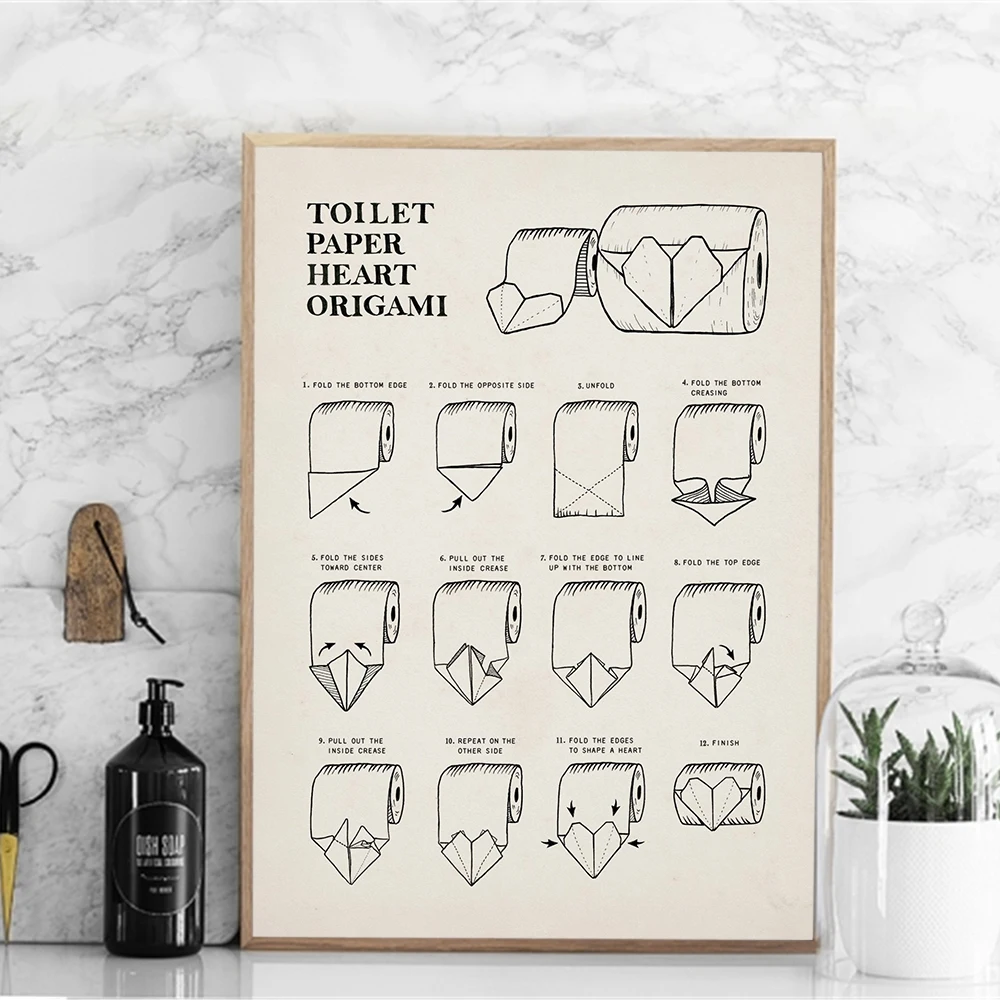 Мойте руки каллиграфия печать картины туалетная бумага рулон бумаги оригами искусство стены холст постер ванная комната винтажная Живопись Домашний Декор