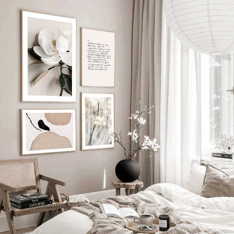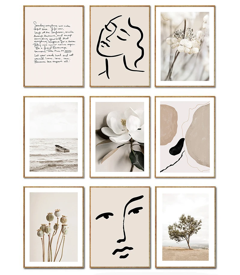 Растения и цветы с абстрактными линиями Северный бежевый плакат настенный художественный принт Картина на холсте, украшение картинки для Гостиная