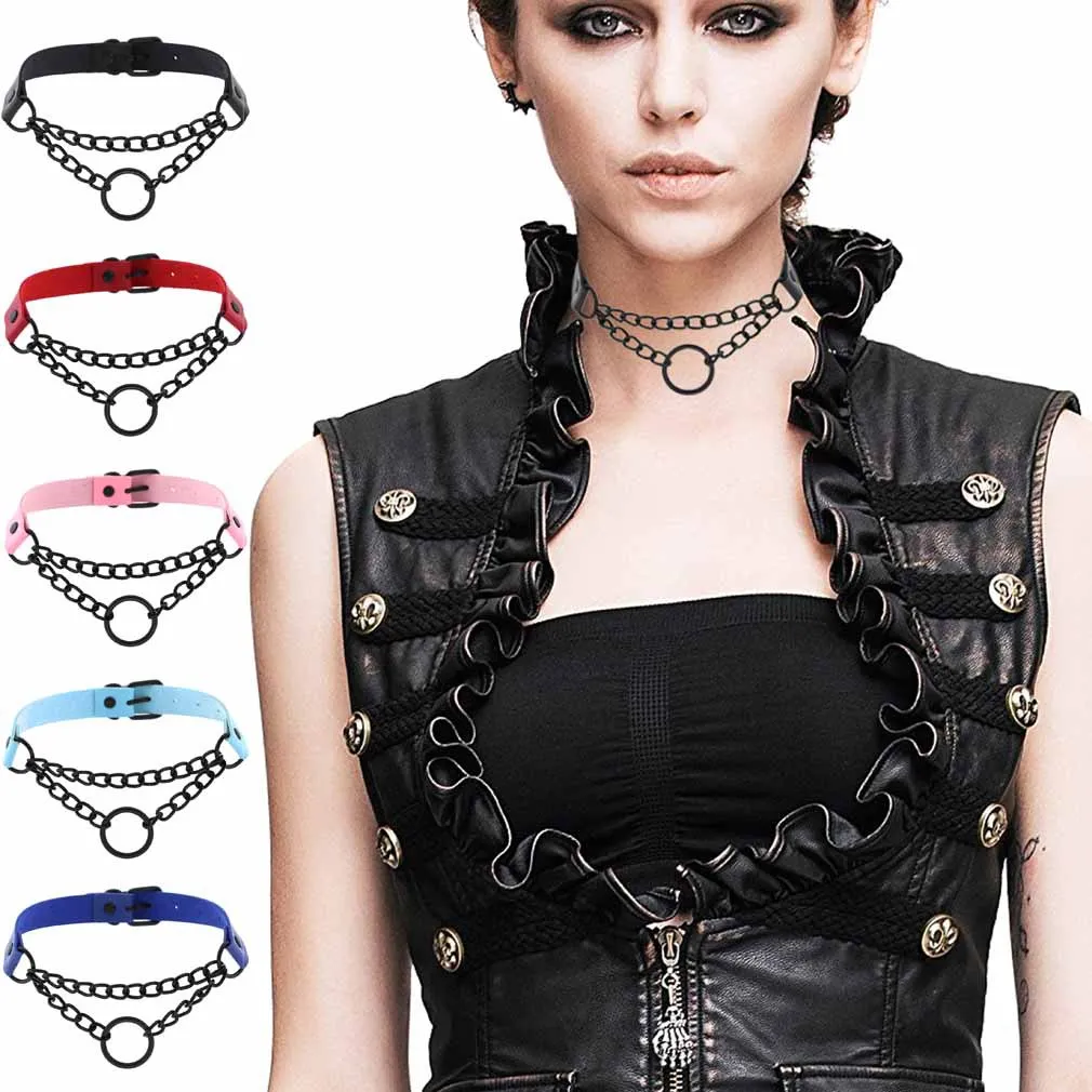Женское готическое ожерелье ZIMNO, черное ожерелье О-образной формы из искусственной кожи, с цепочкой на шею в готическом стиле, в стиле Харадзюку