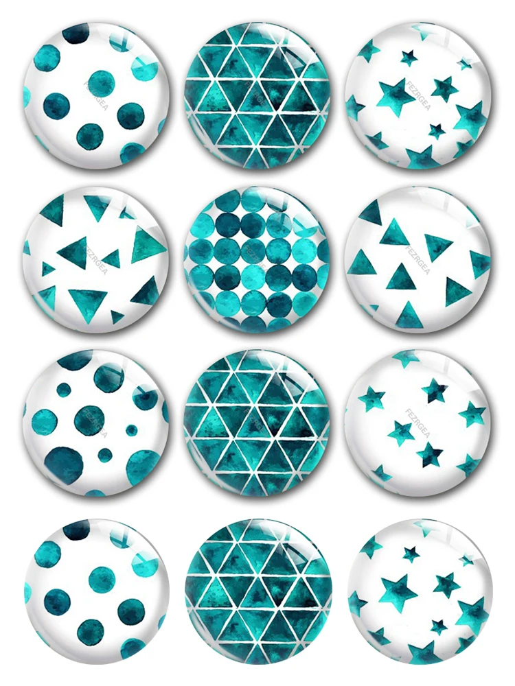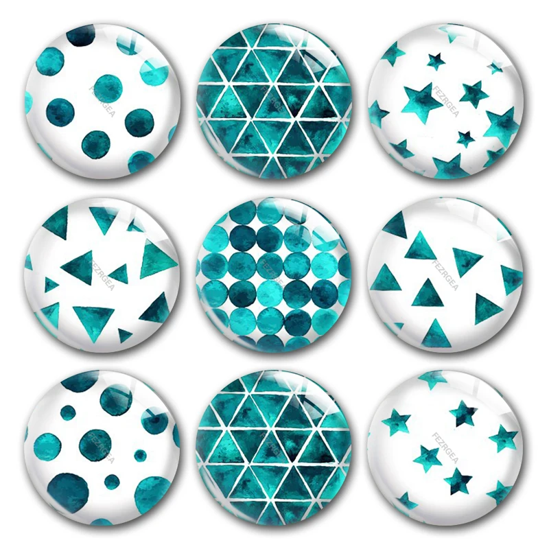 Ручной работы голубой-синий Треугольники точка с принтами в виде звезд; Круглый Фото Стекло кабошоны демо с плоской задней частью "сделай сам" для изготовления ювелирных изделий, фурнитура для аксессуаров