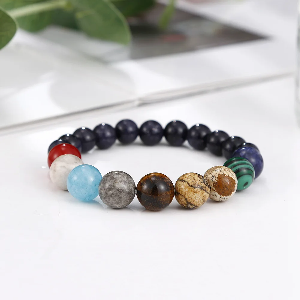 Браслет из натурального камня для влюбленных, ювелирные изделия для мужчин и женщин, браслет с бусинами в виде чакр, Вселенной, йоги, галактики, солнечной системы