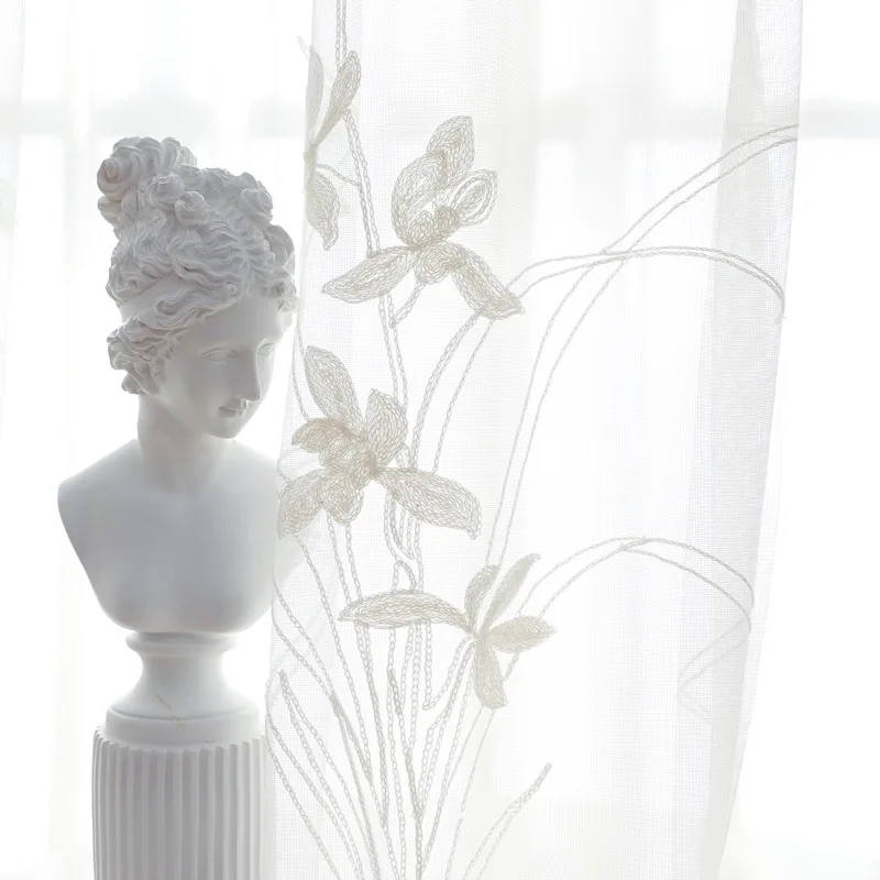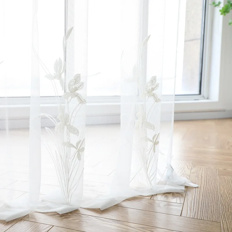Вышитая Орхидея белая Тюлевая занавеска s для окна балкона гостиной готовая занавеска