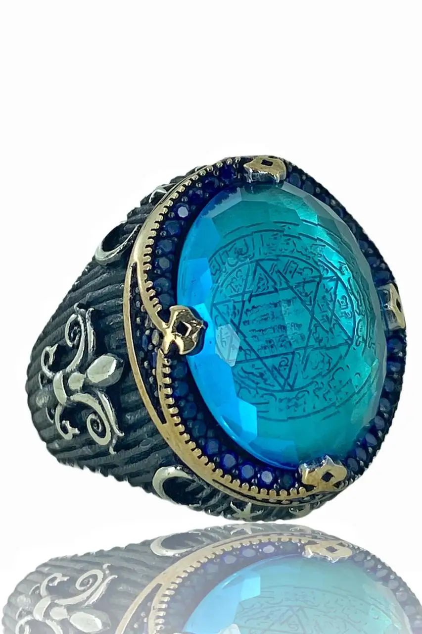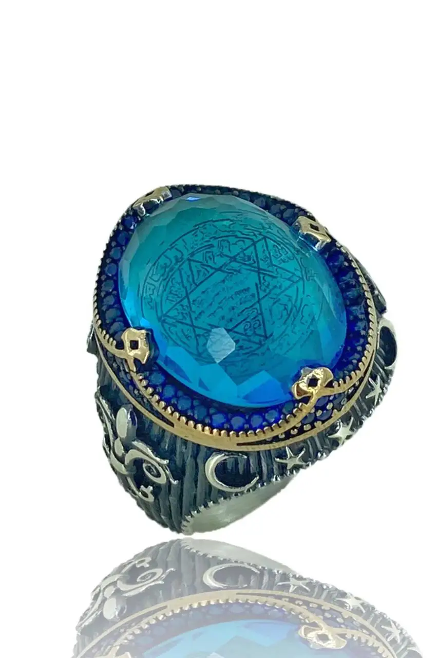 Кольцо из серебра 925 пробы с голубым топазом Звезда Давида