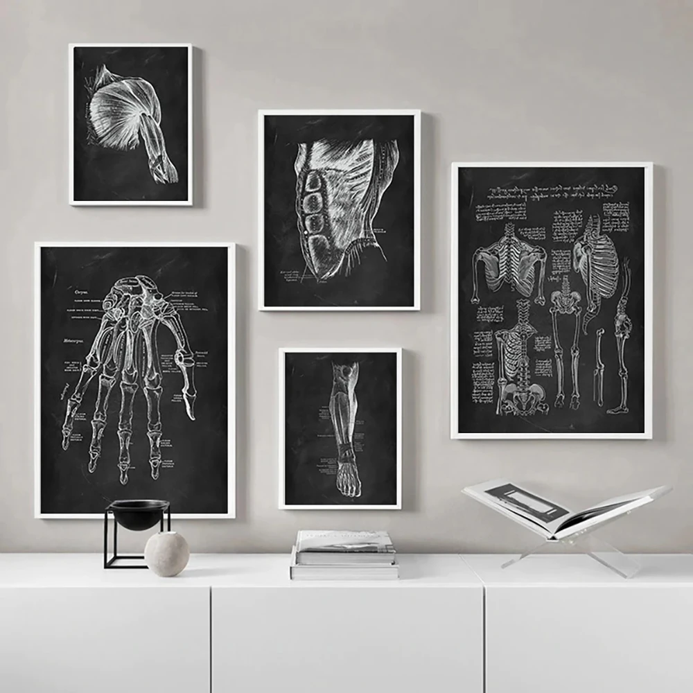 Черно-белое изображение анатомии человека, настенное изображение ме...