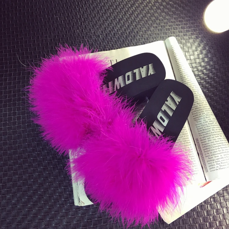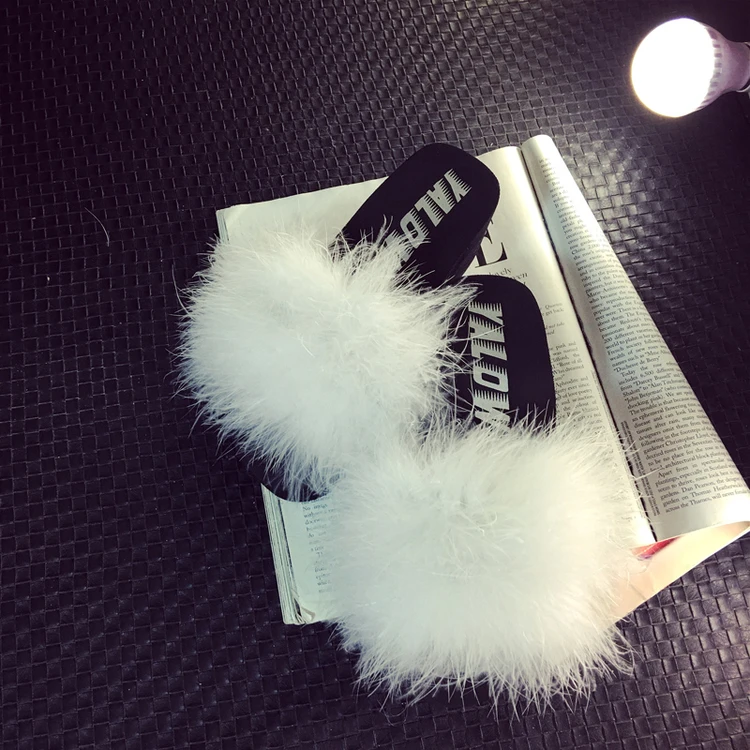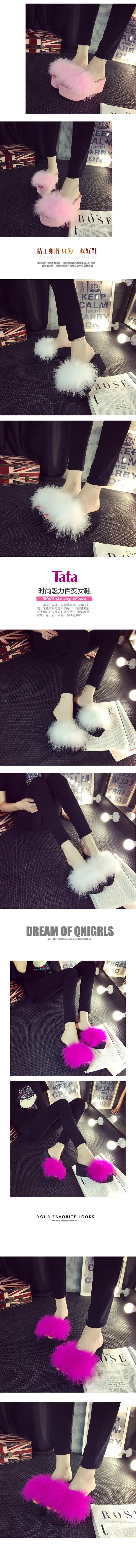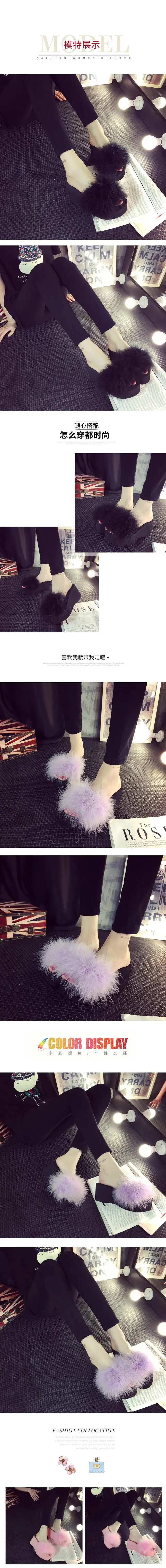 Пляжные женские шлепанцы, с мехом, с перьями страуса, мягкие