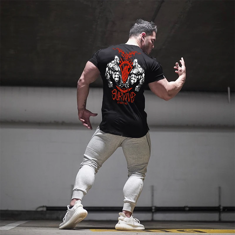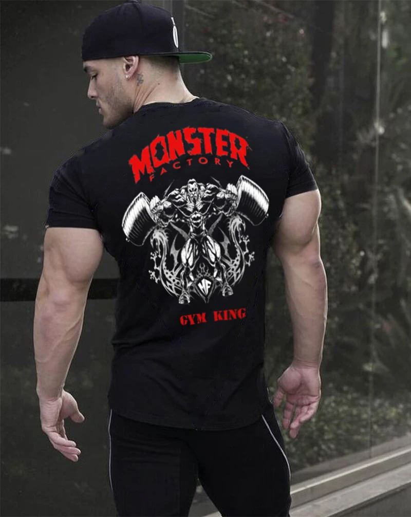 Футболка мужская с принтом, хлопок, короткий рукав, для спортзала, ...