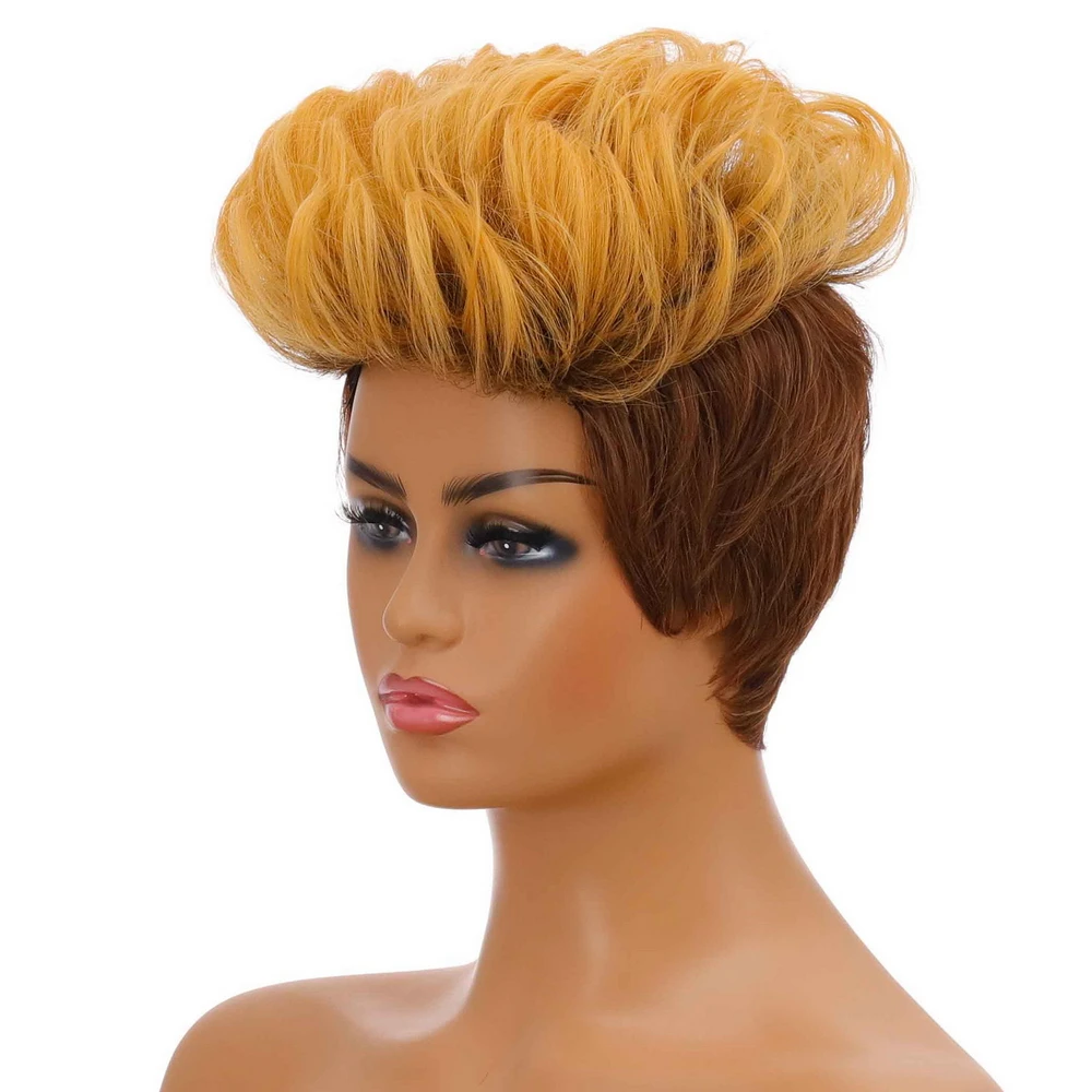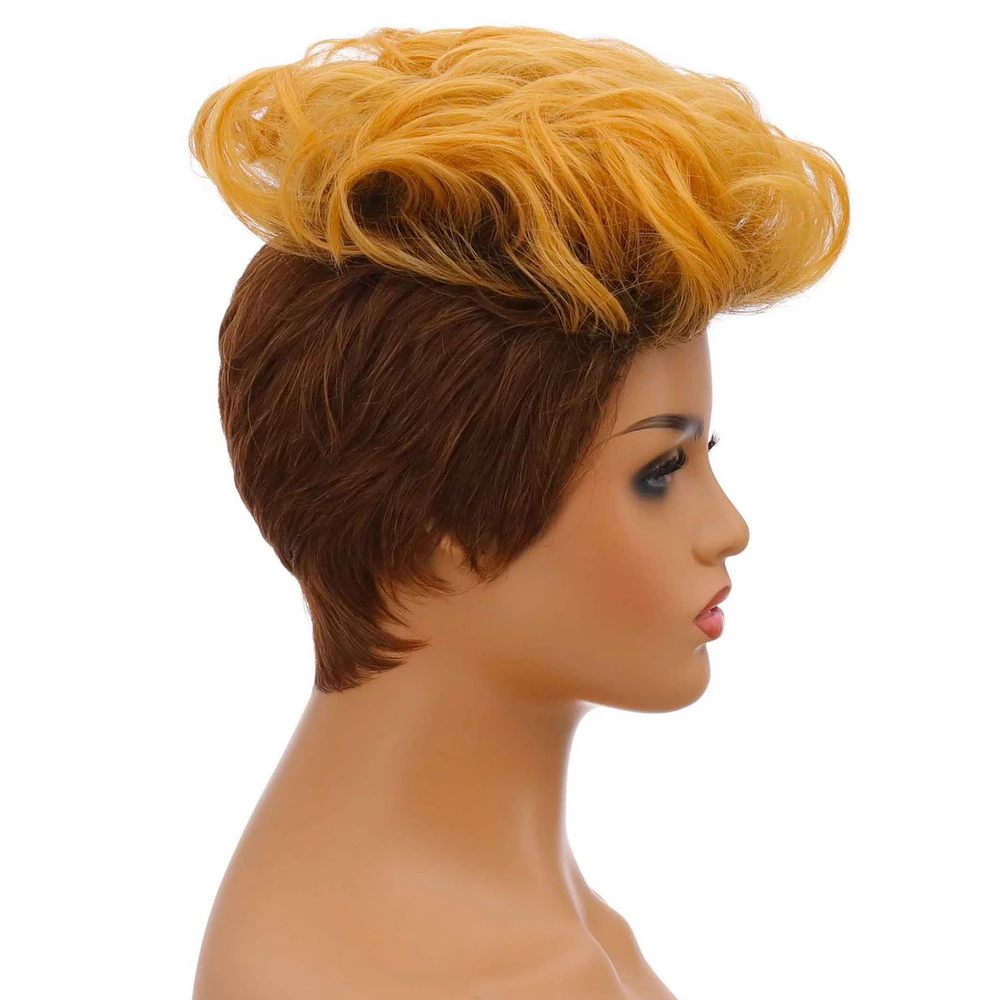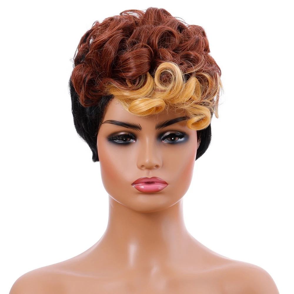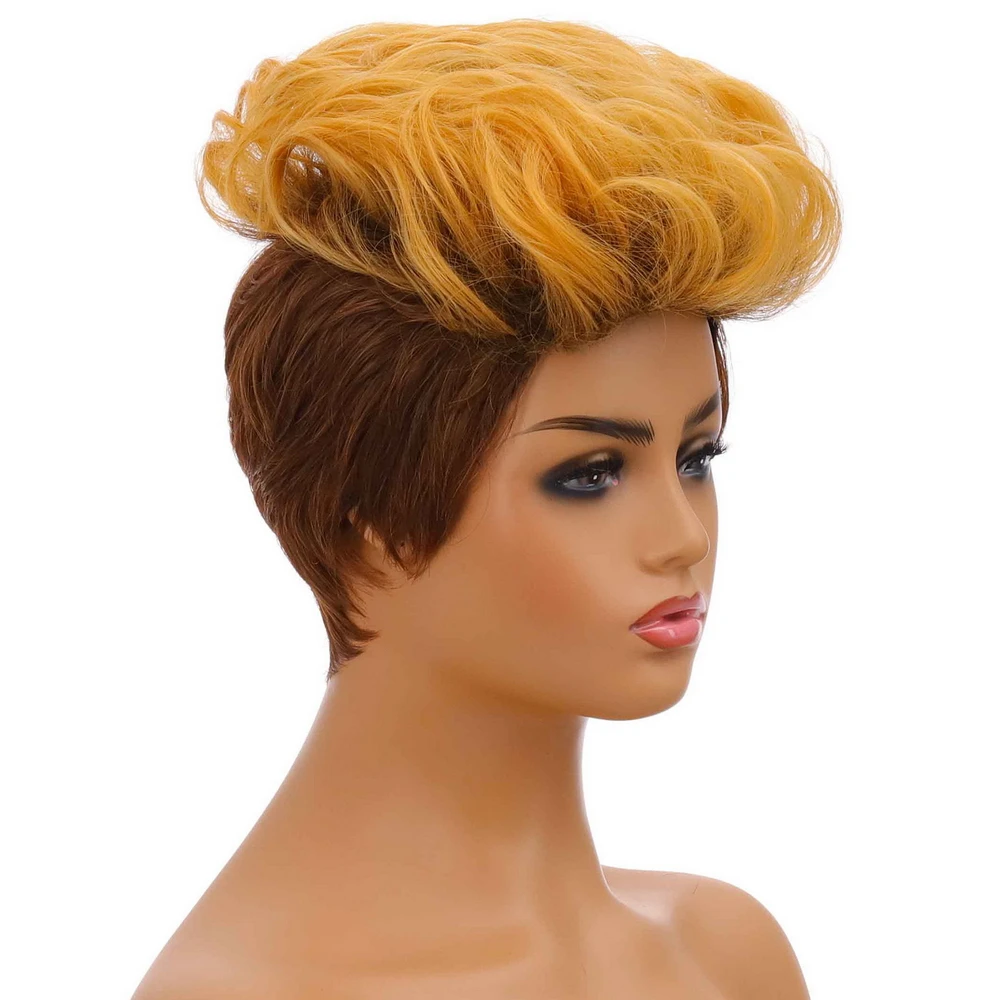 Yiyaobess; Короткий кудрявый парик синтетические волосы блонд, коричневый, Рыжий эффектом деграде (переход от темного к парики для вечеринок на Хэллоуин для черный Для женщин парик