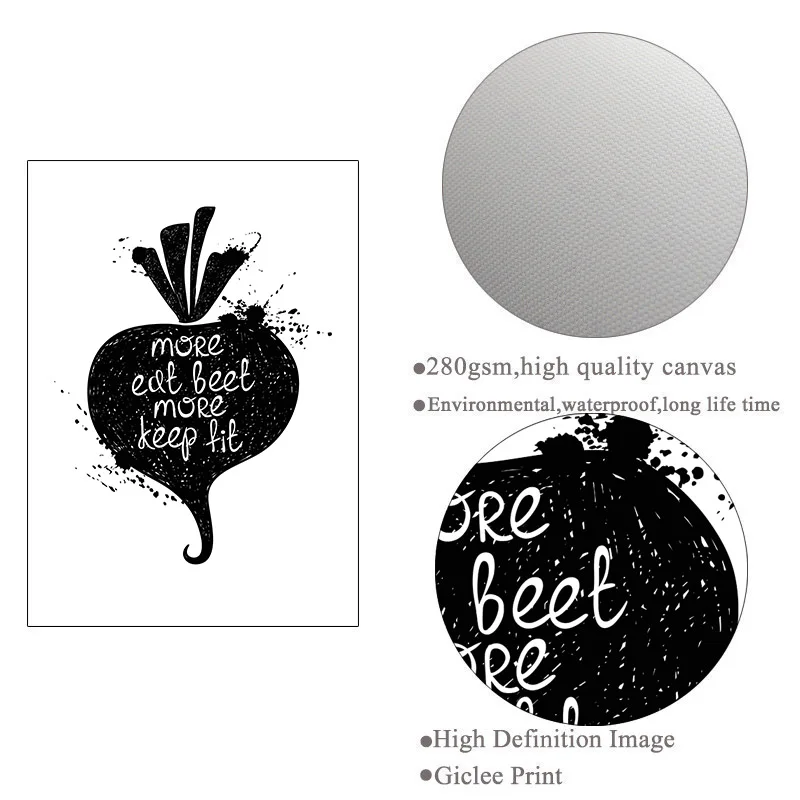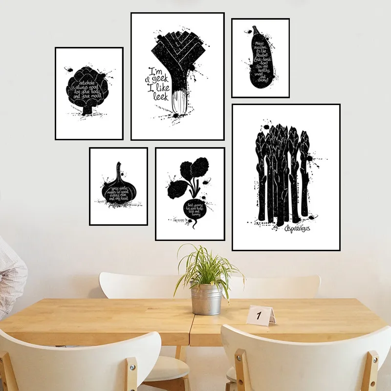Креативная поэтическая цитата, постер на стену кухни, художественная картина, принты овощей, силуэт, черная белая Картина на холсте CF002
