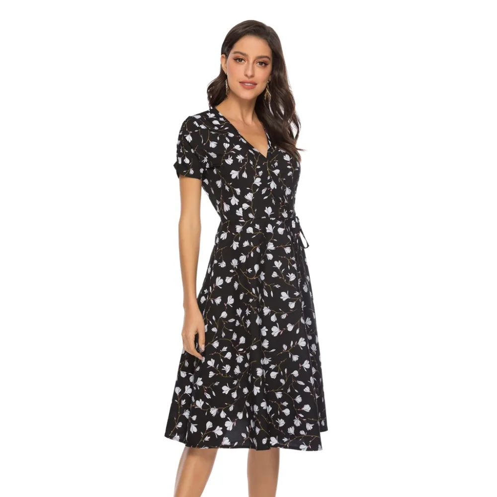 Летние женские 2021 Бохо пляжные платья свободного покроя с коротким рукавом шифоновое женское платье с принтом, винтажное платье миди Модные женские элегантные халат Vestidos
