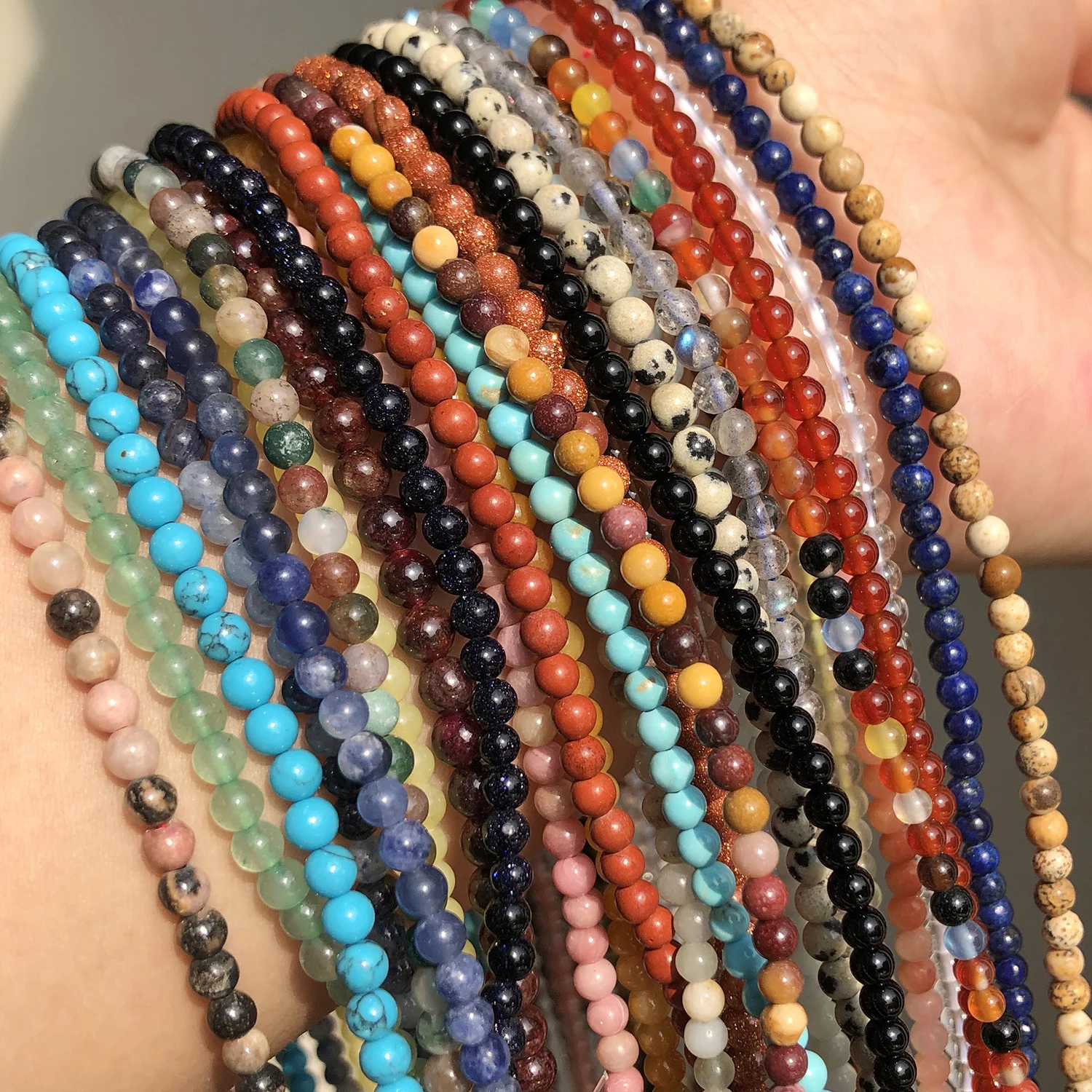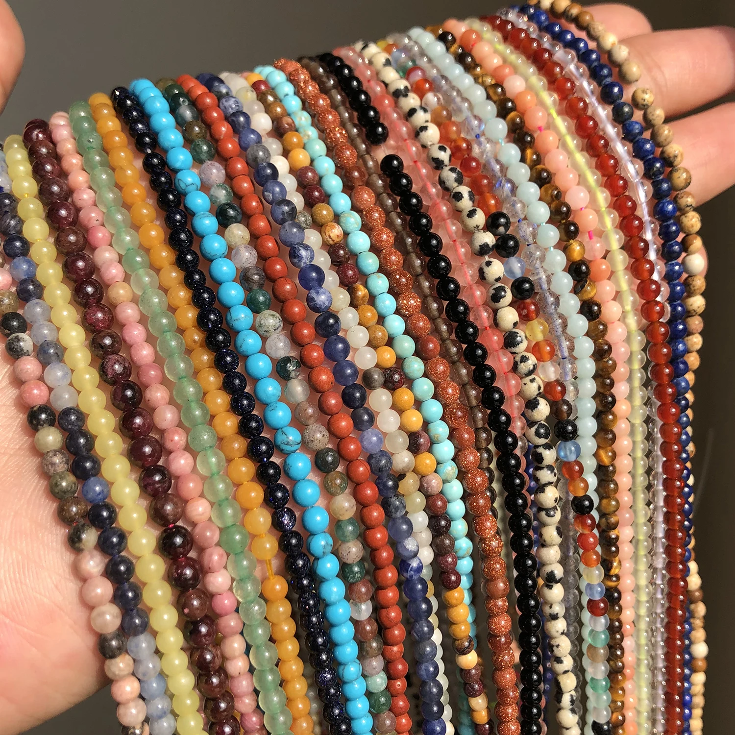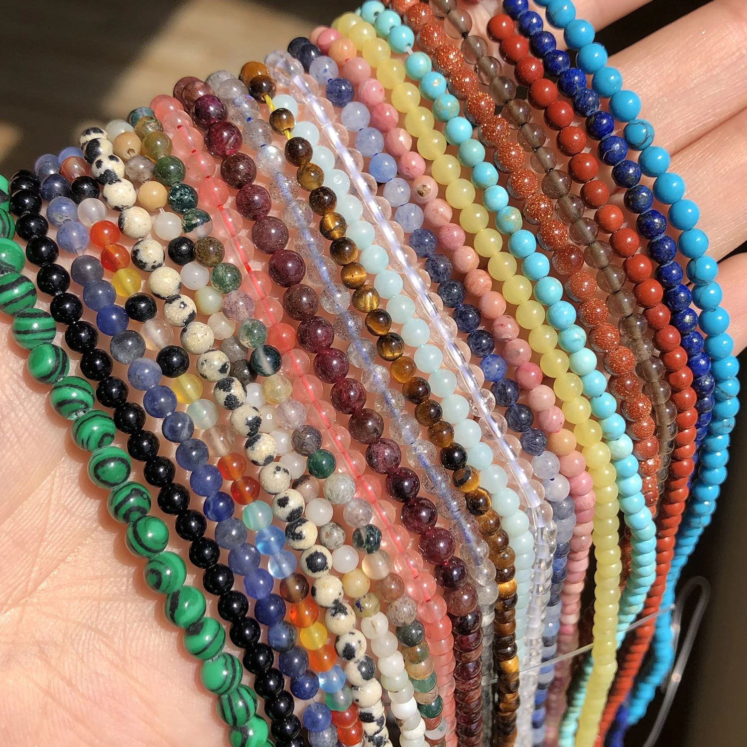 Бусины из натурального камня, агат, нефрит, кристалл, Круглый пони, крошечные бусины для бисероплетения, для браслета сделай сам, 2 мм, 3 мм, 4 мм, 15 дюймов