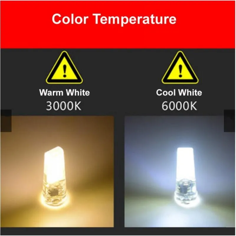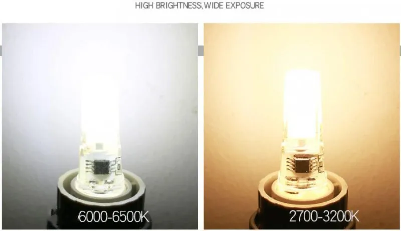 Разъем: G4 G9 E14 мощность: 3 Вт 6 Вт Напряжение: 220 В и 12 В светодиодный чип Модель: COB светодиодный Материал корпуса: силикон угол луча: 360 градусов срок службы: 20 000 часов Цветовая температура: теплый белый/холодный белый