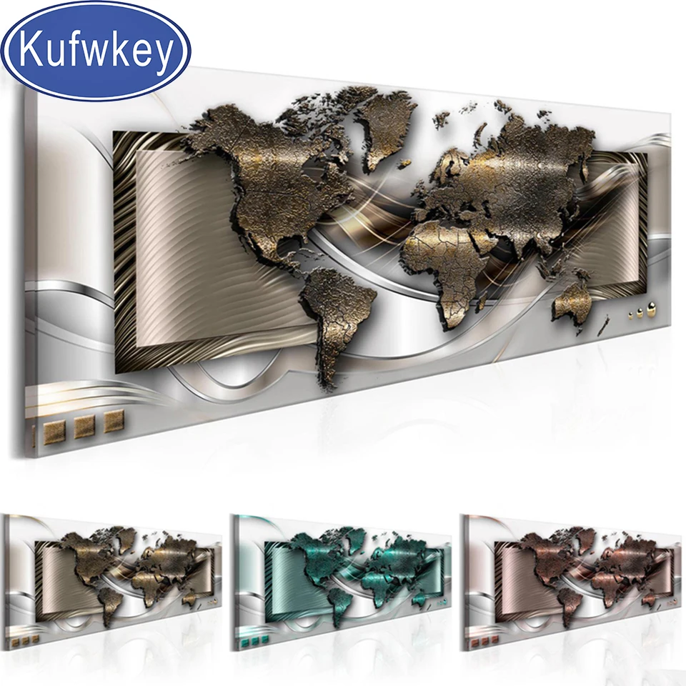 Полный 5D DIY алмазная живопись абстрактный Металл карта мира Алмазная вышивка мозаичные Стразы Большой размер украшения для офиса