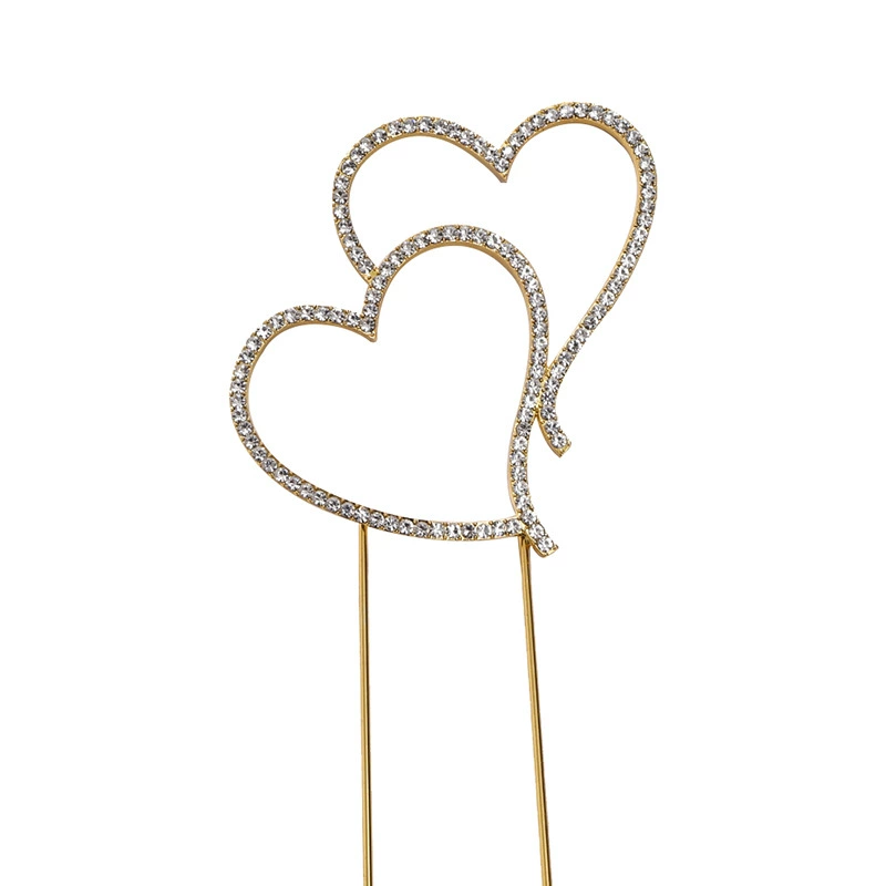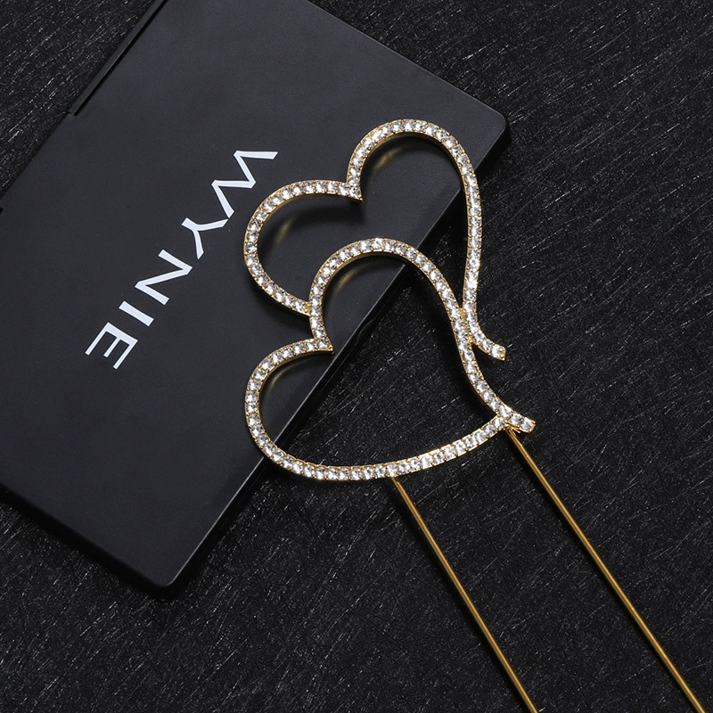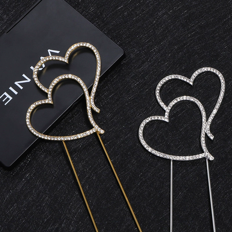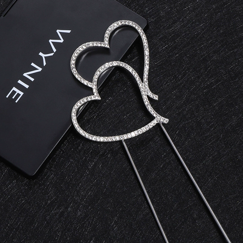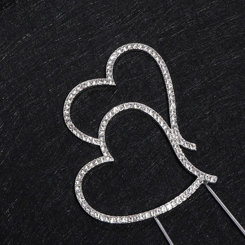 Новый Торт фигурки жениха и невесты; Романтические Кристальные Стразы Серебряные двойной Топпер для торта в форме сердца Свадебная вечеринка украшения новый год Декор