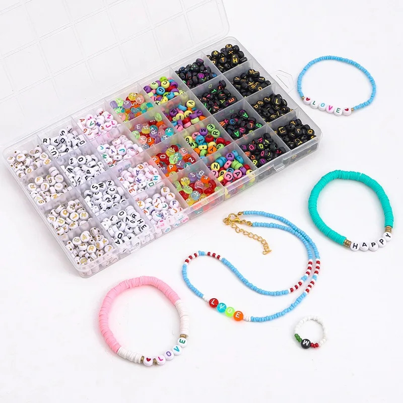 Квадратная акриловая коробка с буквами для детского пазла и бусинами, набор для самостоятельного изготовления браслетов, аксессуары для изготовления ювелирных изделий, Круглый алфавит, разделитель, наборы бусин