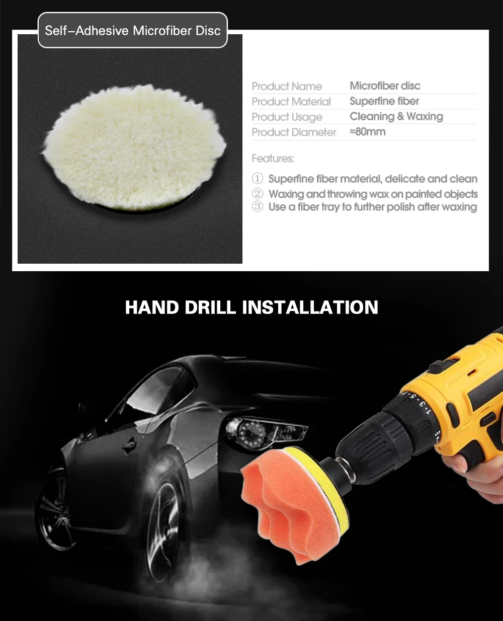 3-дюймовый диск автомобильного полировщика 11 шт./компл. самоклеящиеся полировка воском губки шерстяное колесо полировальные подложки для полировальная машинка для автомобилей с эксцентриковым, адаптер для дрели