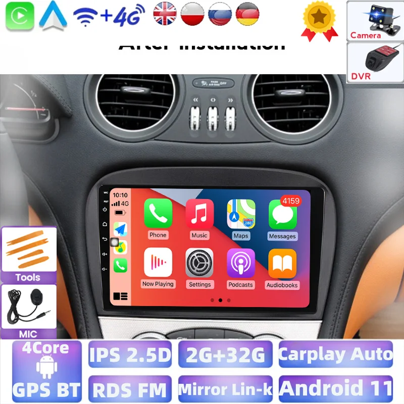 Автомагнитола NAVITREE, IPS, 2 ГБ + 32 ГБ, Android 11, Dvd, Gps-навигатор, 4 ядра, для Mercedes Benz SL-Class SL350