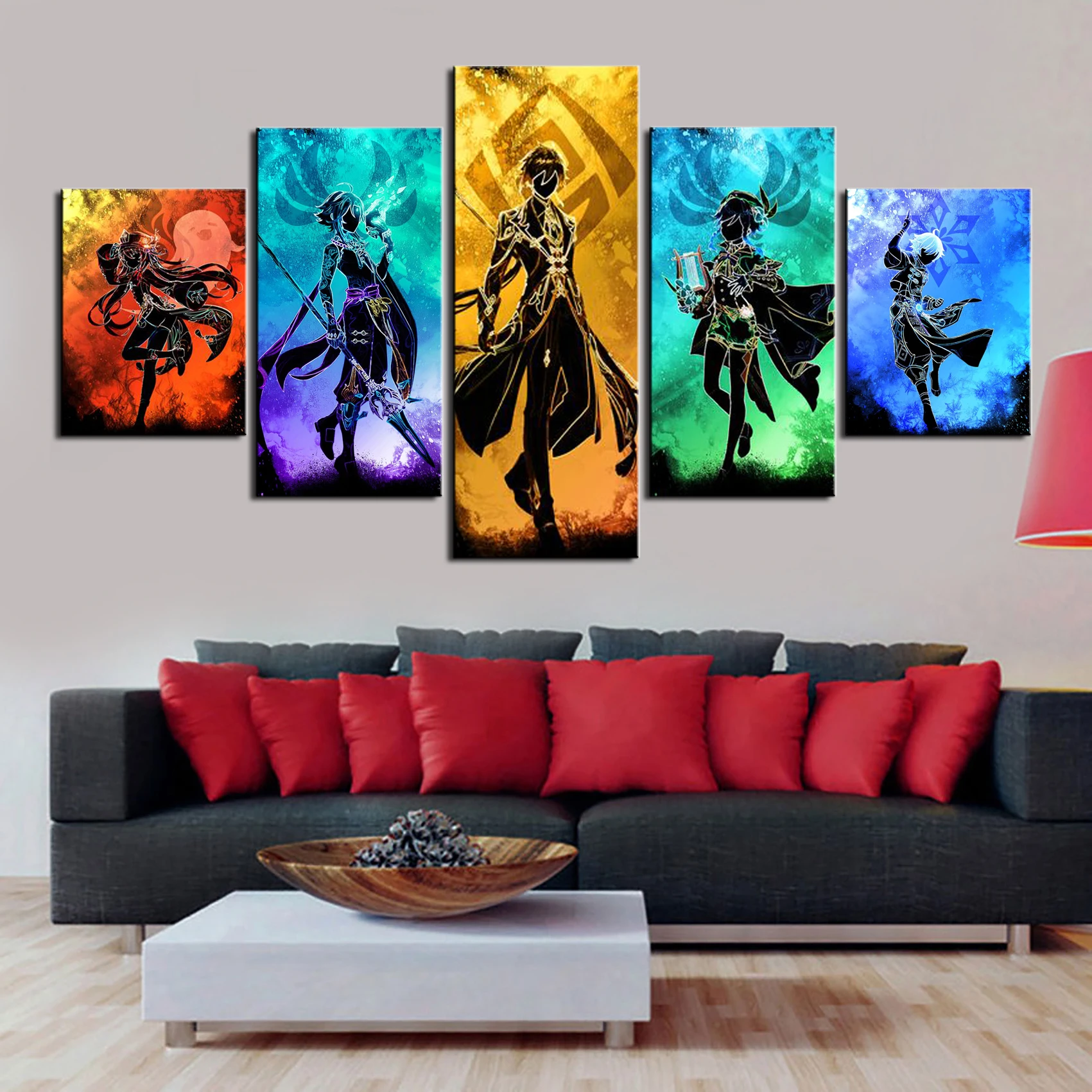 Постеры с эффектом Genshin 5 шт., HD постер с игрой, аниме постер с...