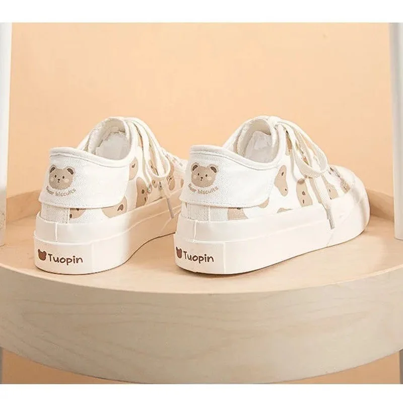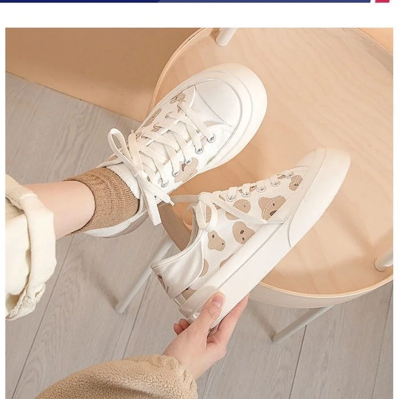 Kawaii, летние парусиновые кроссовки с принтом медведя, модная обув...