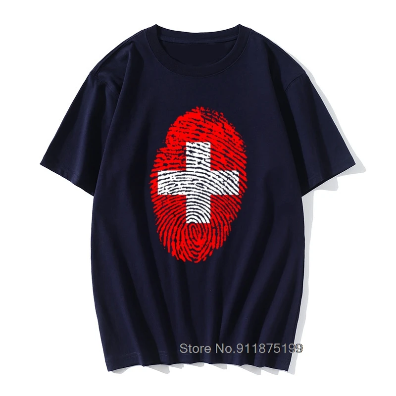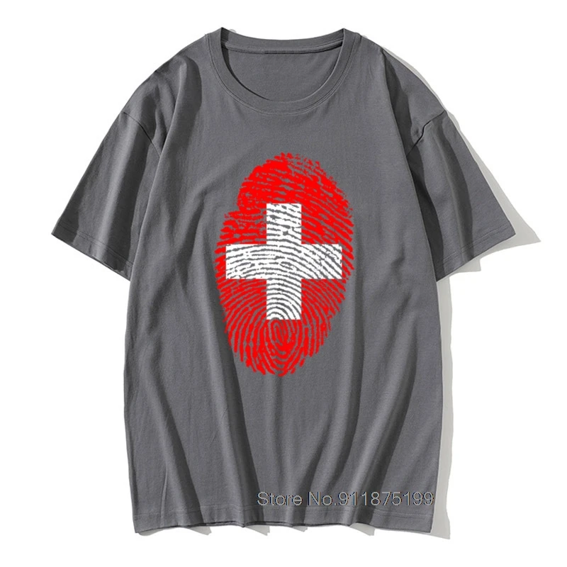 Футболка мужская хлопковая с принтом Швейцарского Флага и отпечатков пальцев