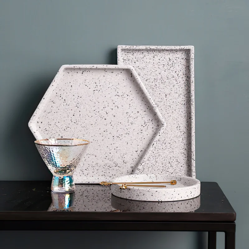 Керамика декоративный поднос тарелка терраццо текстура Косметика Дисплей Органайзер Домашняя Кухня украшения для хранения