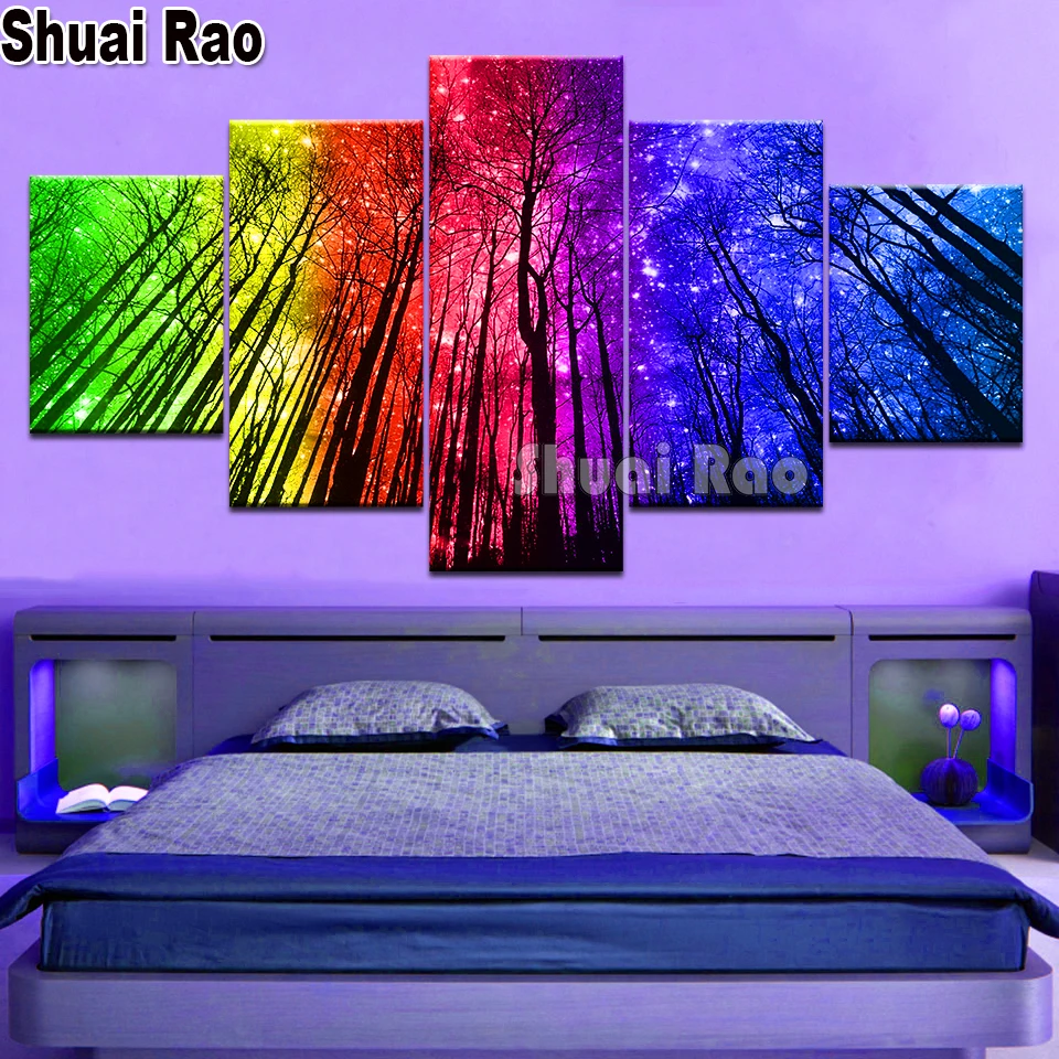 5 шт набор алмазов картина красочные дерево домашний декор, камни в форме ромба и круглый Бриллиантовая вышивка Фэнтези Вышивка крестом Алмазная мозаика,