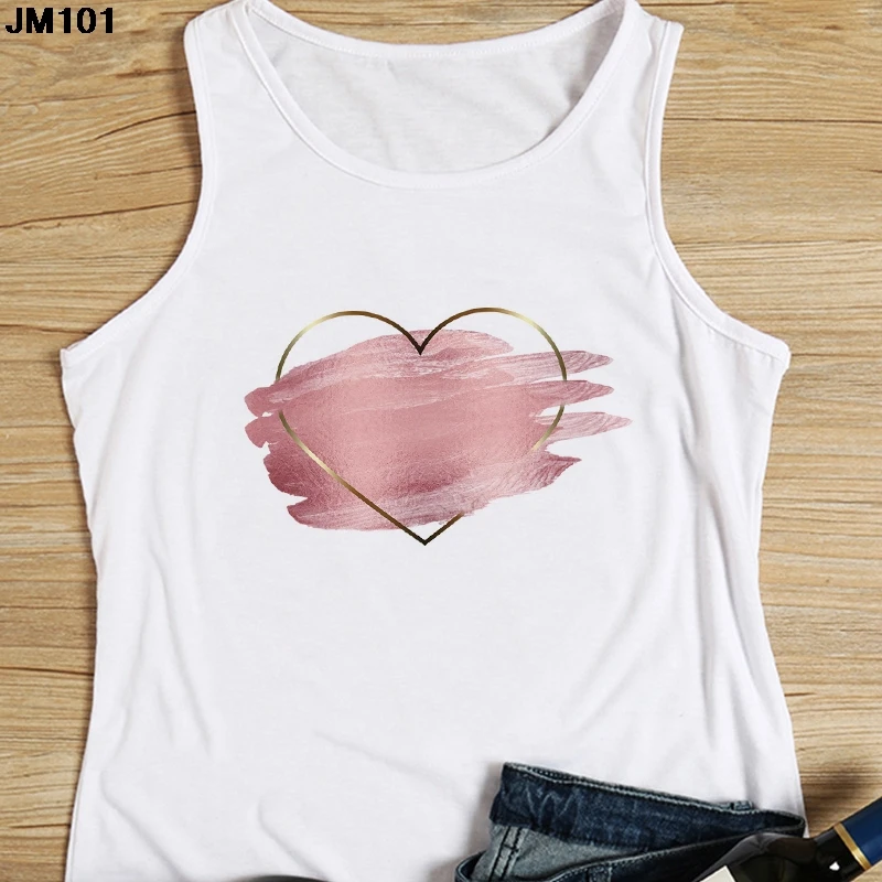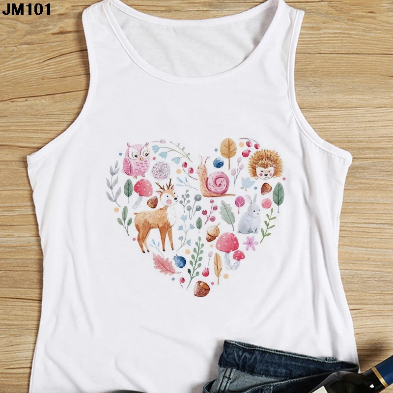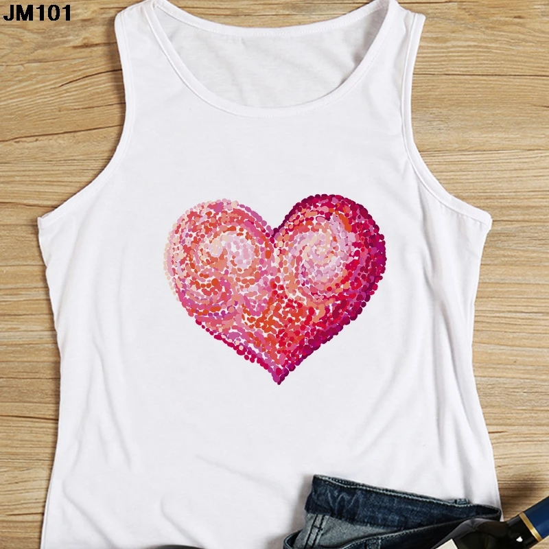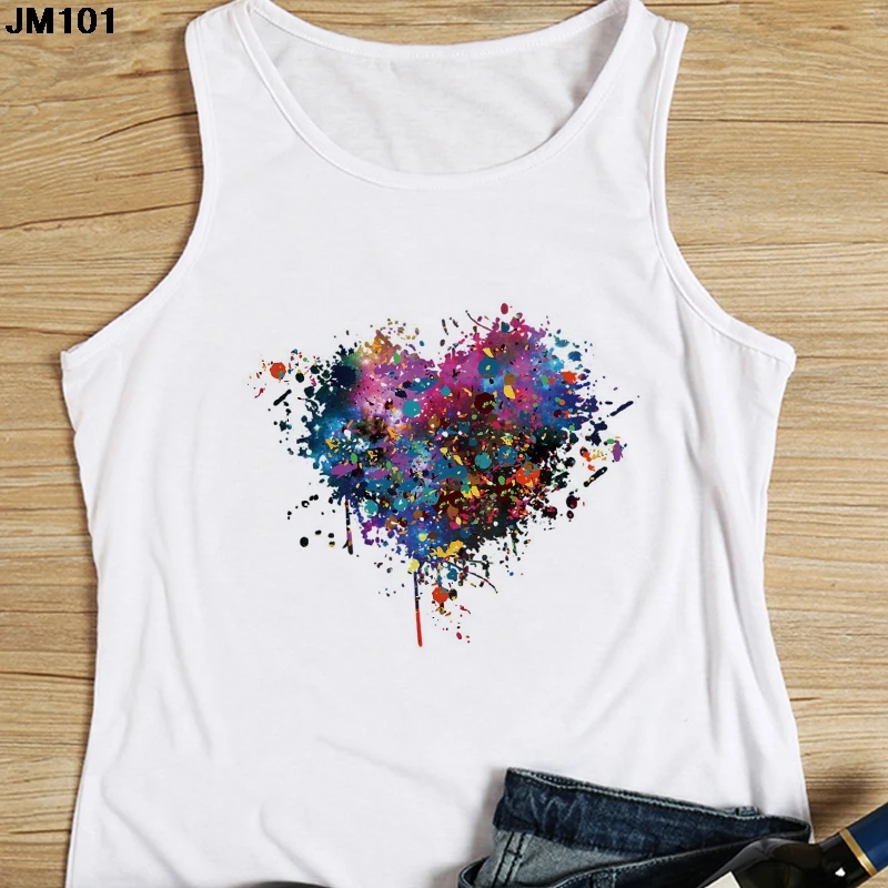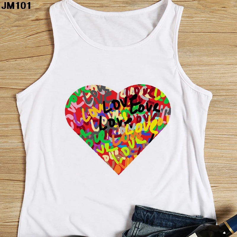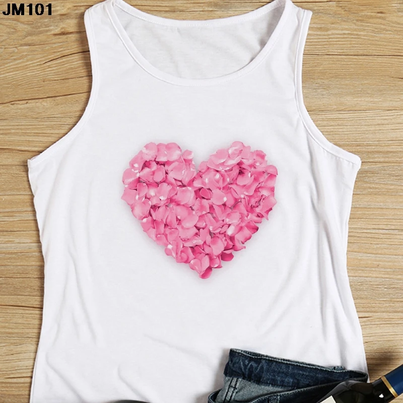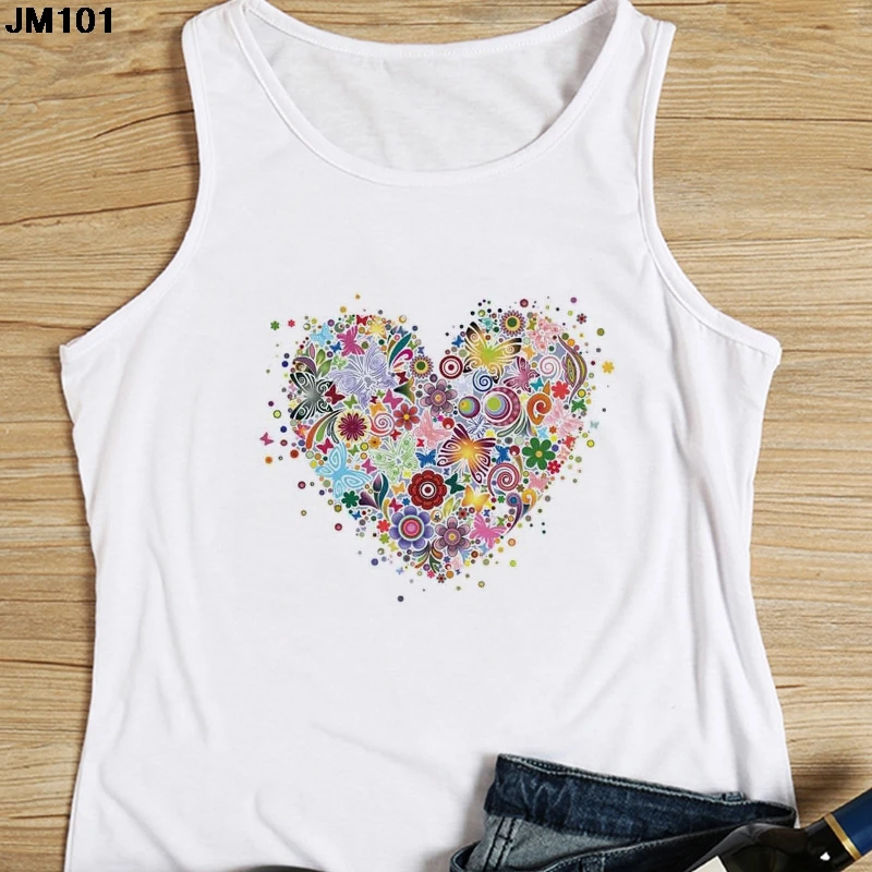 Женская майка с цветочным принтом, повседневный белый жилет в стиле Харадзюку, топ с графическим принтом сердечек, модная футболка без рукавов, на лето