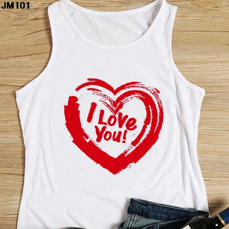 Майка женская с принтом love, пикантный белый Повседневный Свободны...