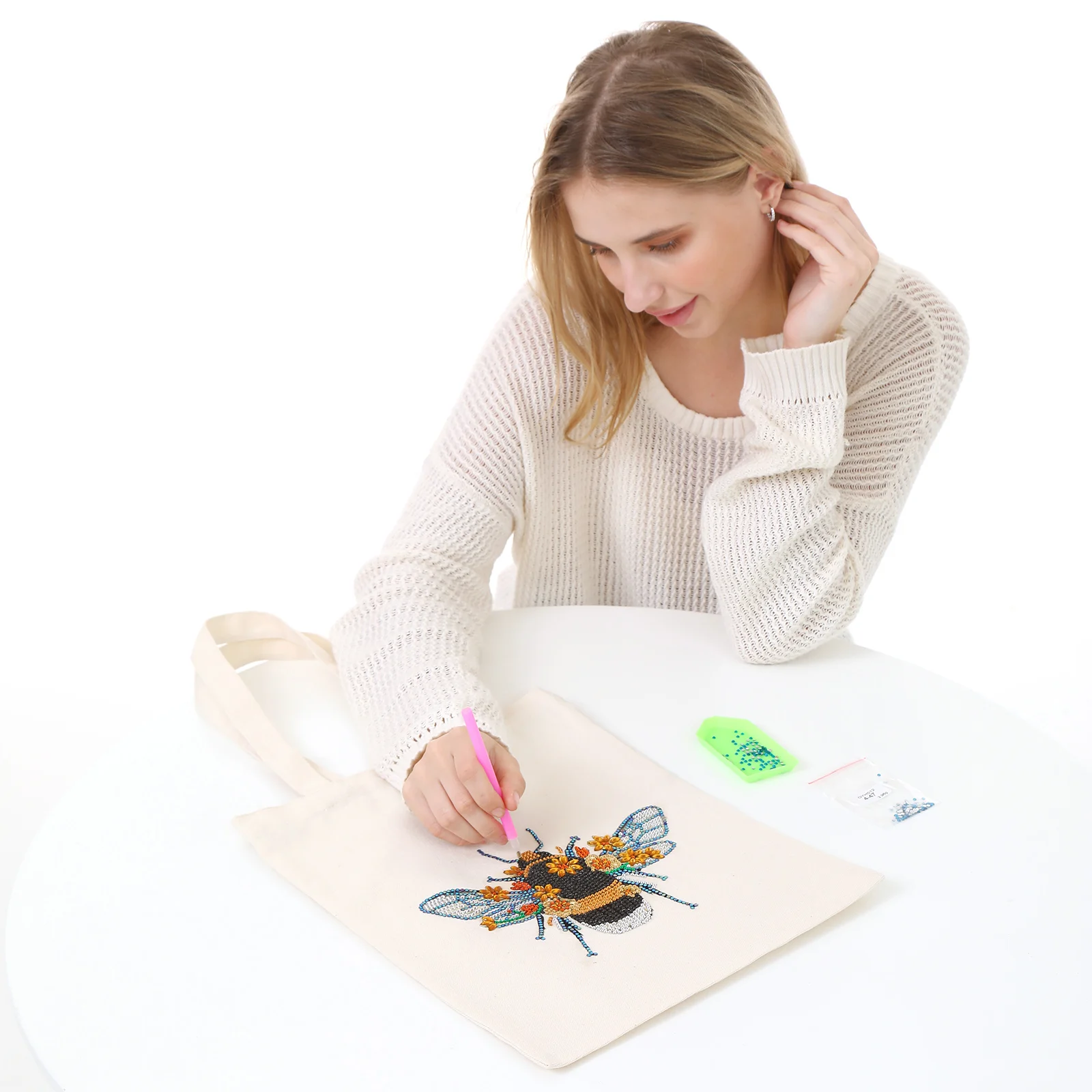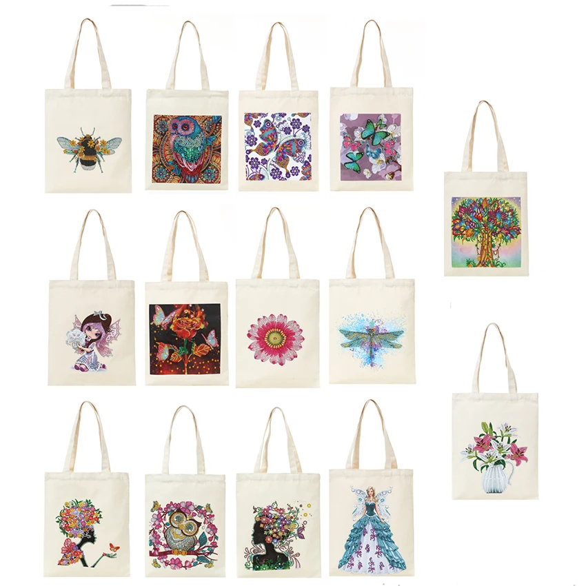 Хлопчатобумажная Холщовая Сумка-тоут с бриллиантами 5D, для творчества, алмазная живопись, многоразовые продуктовые сумки, прочные сумки Стразы, алмазная Сумочка для творчества