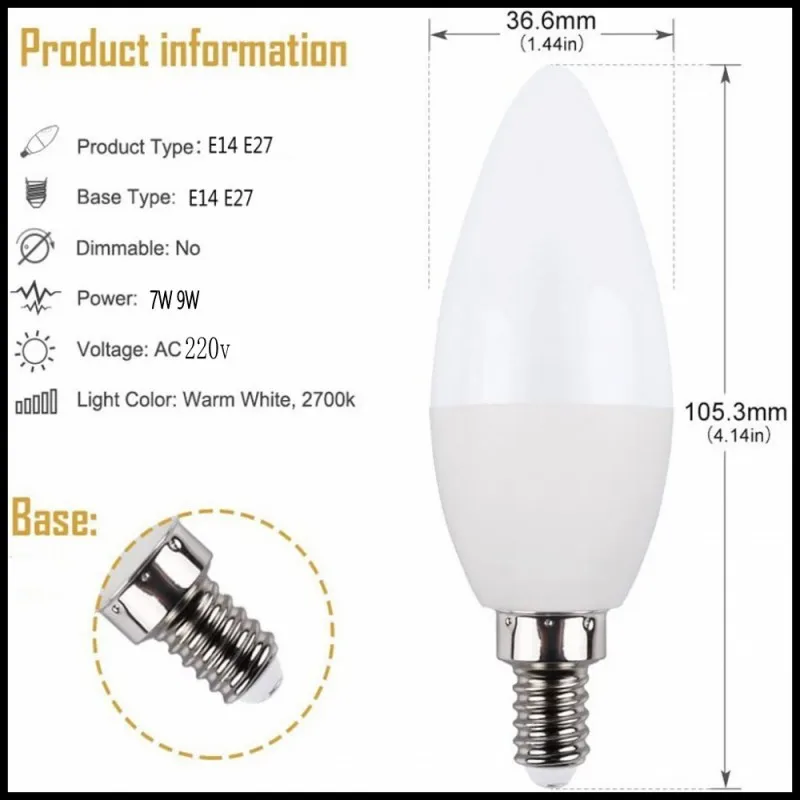 Страна: ES Emitting Color: E14 Color: Warm white Number of LED Chip: 10 pcs Wattage: 9w Доставка: Saver Shipping 31.10.2022