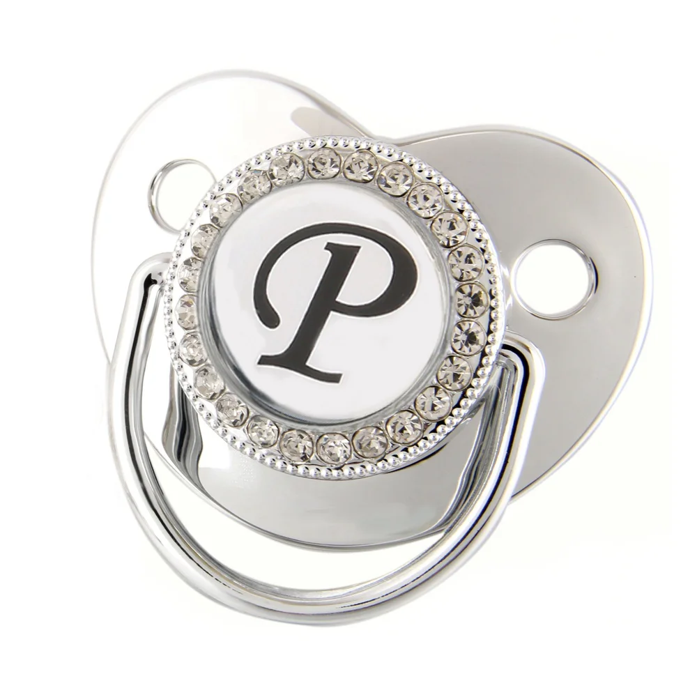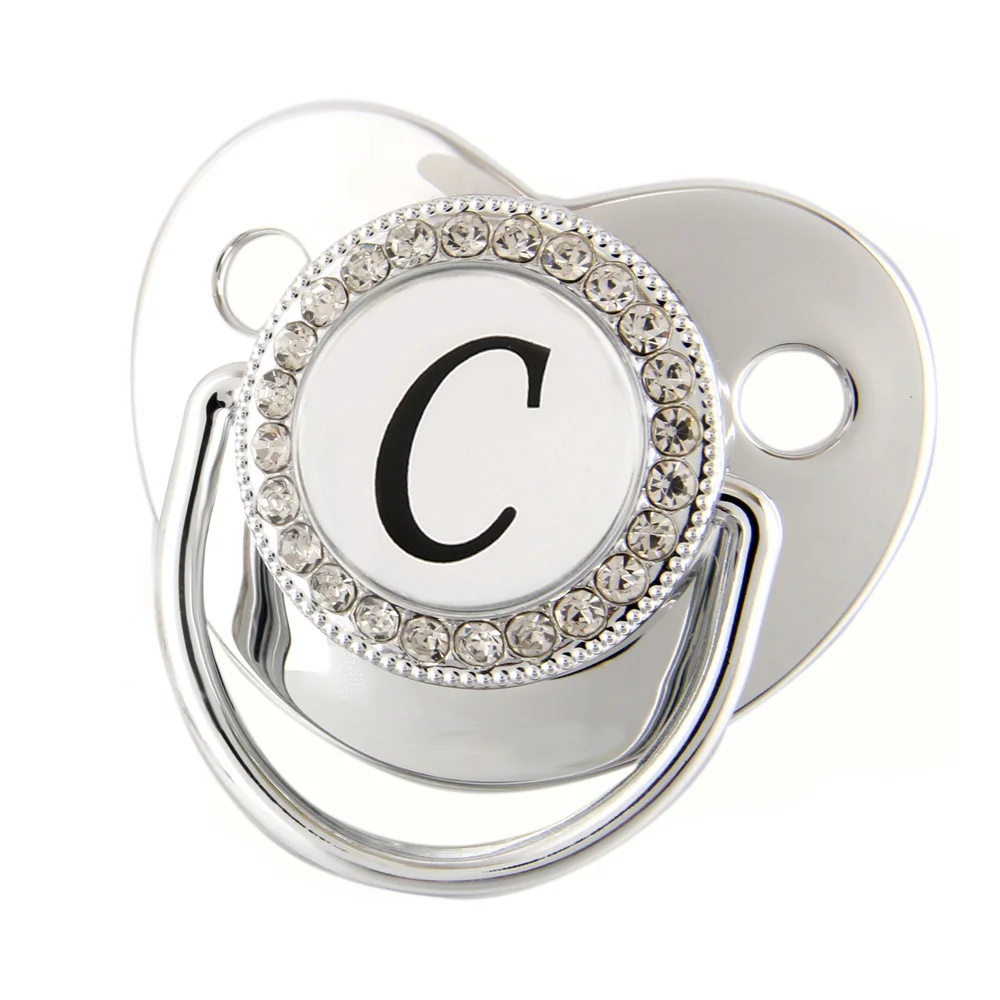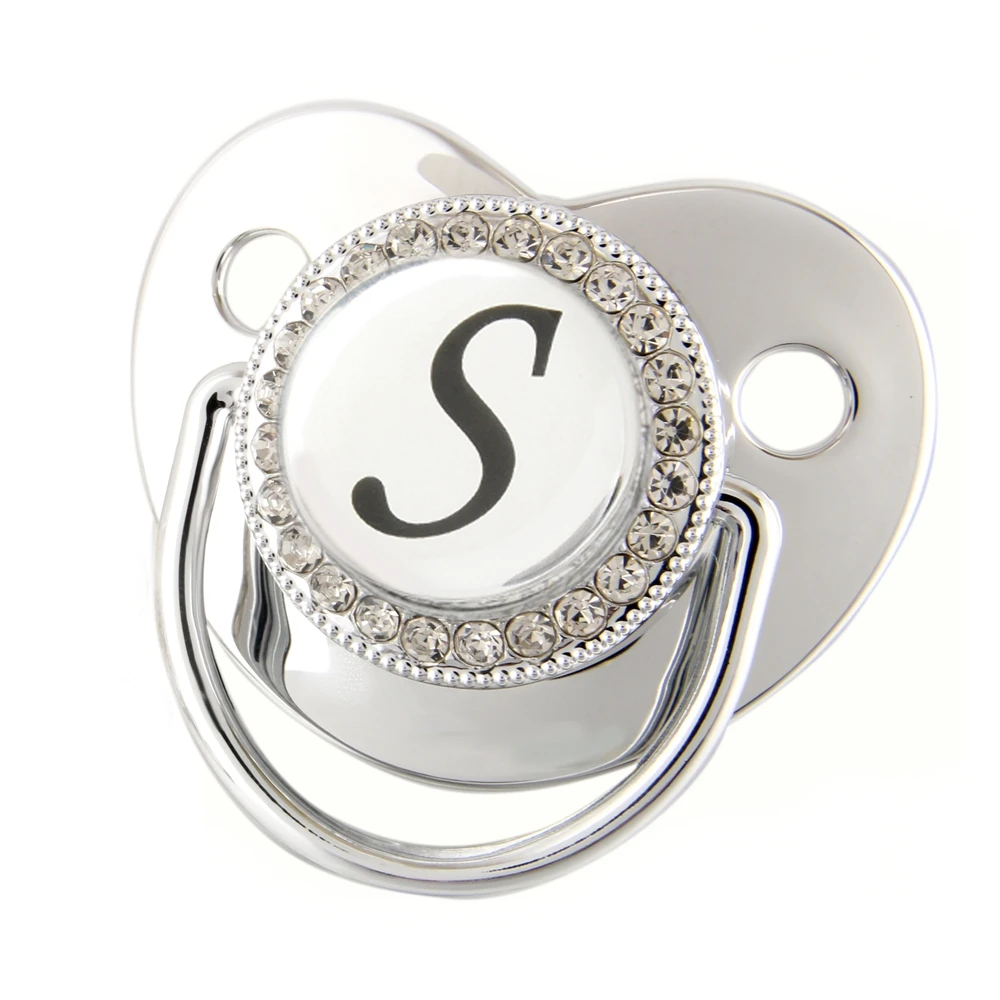 Соска-пустышка для новорожденных с инициалами 26 названий, серебро детская Силиконовая пустышка, без БФА
