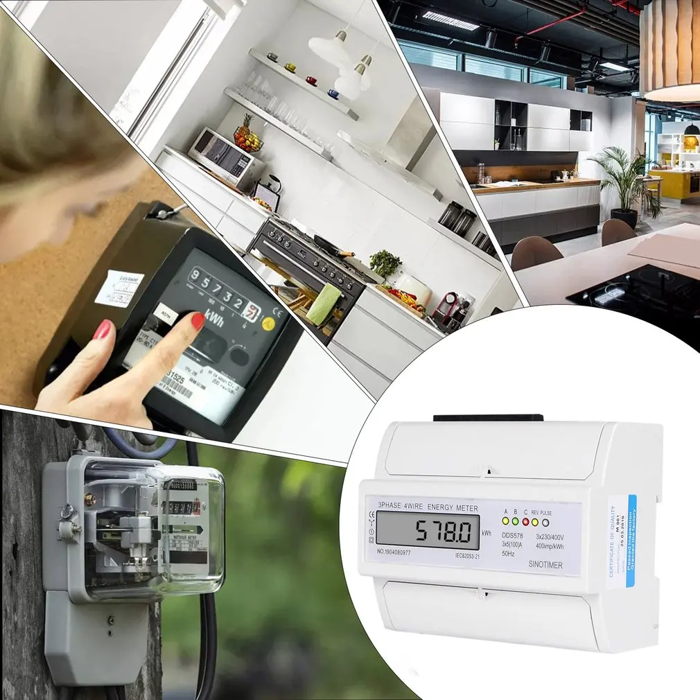 SINOTIMER DDS578 три фазы 4 провода 5-100A 380V Цифровой Мощность метр потребление электроэнергии измеритель 35 мм DIN рейка крепление