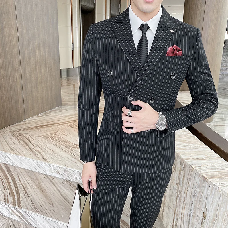 Комплект из пиджака и брюк, роскошный модный костюм в полоску, мужской строгий деловой, свадебное сценивечерние танцевальное платье для жениха