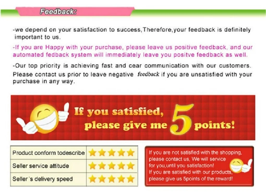 О товареВсе товары 100% новые, надежные и тщательно проверенные перед отправкой.100% безопасно и безвредно для тела. О доставке:1. Время перевозки осуществляется перевозчиком, за исключением выходных и праздничных дней.Время транспортировки может меняться, особенно во время праздников.2. Если вы все еще не получили товар в течение 30 дней после оплаты, пожалуйста, свяжитесь с нами. Мы Отследим товары и ответим вам как можно скорее. Что делать, если есть проблема с продуктом.Пожалуйста, сначала используйте продукт в соответствии с руководством по продукту. Если он все еще недоступен, пожалуйста, свяжитесь со службой поддержки клиентов вовремя. Пожалуйста, не оспаривать по желанию. Мы считаем, что общение является более спорным.