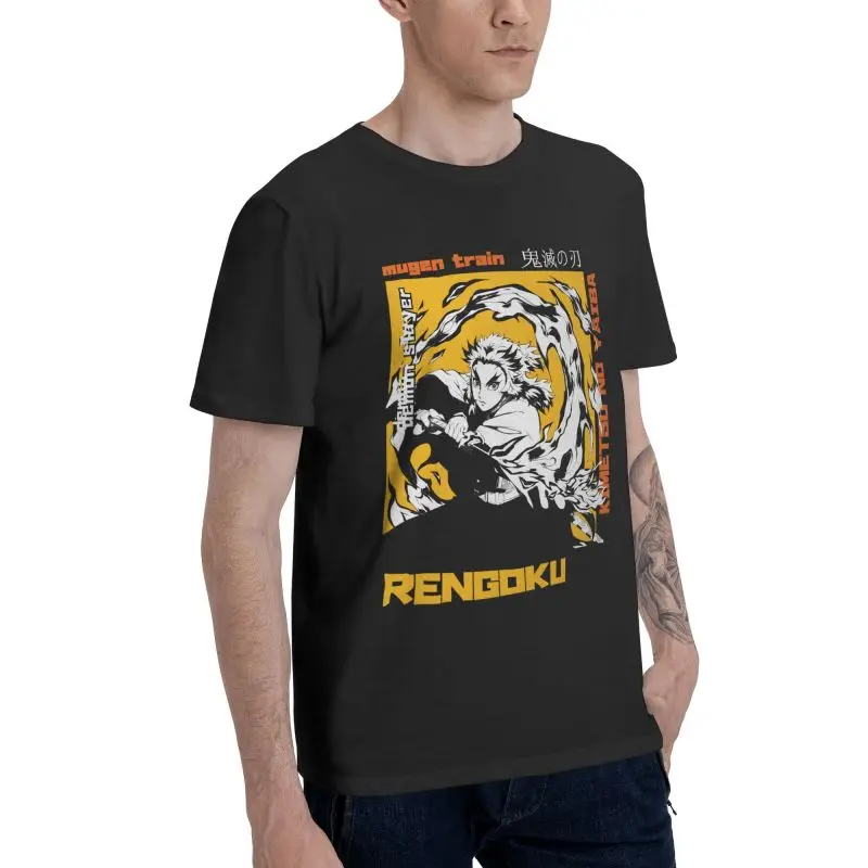 Футболки Kimetsu No Yaiba, мужские футболки с рисунком хлопковые футболки, с коротким рукавом, Demon Slayer, Kyojuro Rengoku, Подарочная одежда