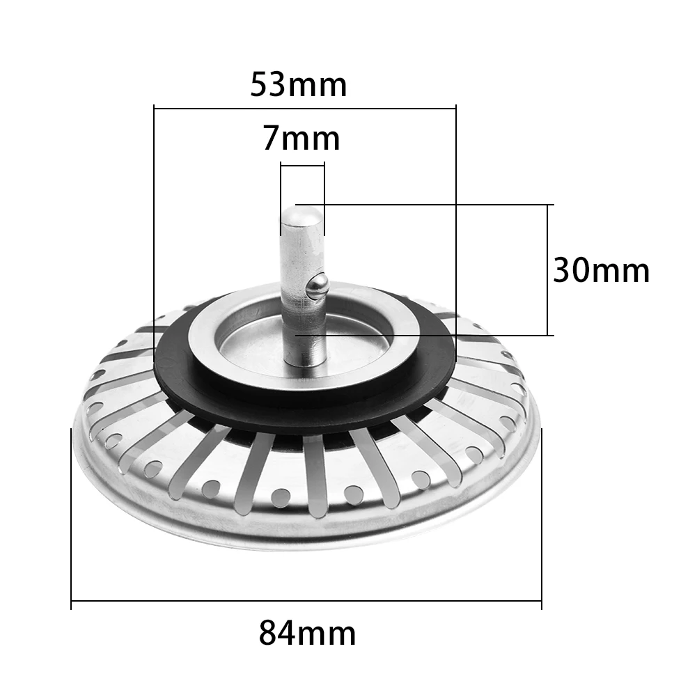 Общий размер для большинства американских/английских раковин: Эта штепсельная вилка фильтра для кухонной раковины имеет внешний диаметр 79/84 мм и Резиновый Размер 53 мм. Перед размещением заказа, пожалуйста, убедитесь, что диаметр штепсельной вилки фильтра раковины и ее резиновое кольцо такие же, как и раньше! Может использоваться в качестве фильтра и штепсельной вилки: Эта штепсельная вилка фильтра раковины может использоваться как штепсельная вилка раковины, так и фильтр. Нажмите кнопку вниз, чтобы заполнить раковину, слегка Поднимите ее, чтобы слить воду и собрать всю воду. Обновление 1: Последний фильтр раковины имеет 20 небольших сливных отверстий (другие обычно имеют 18 больших отверстий) для быстрого дренажа во время сбора небольшого количества отходов. Обновление 2: обновленное резиновое уплотнение мягче, более прочное и не легко деформируется; Дополнительные прокладки из нержавеющей стали добавляются под резиновым уплотнением, чтобы обеспечить лучшую производительность хранения воды в штепсельной вилке фильтра. Обновление 3: штепсельная вилка фильтра весит 60 г. Поскольку в нем используется более качественная нержавеющая сталь, она в два раза тяжелее, чем в других или более старых версиях. Список:1*2 шт. фильтр для раковины