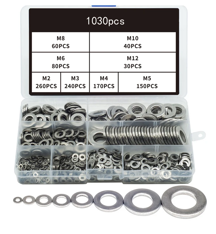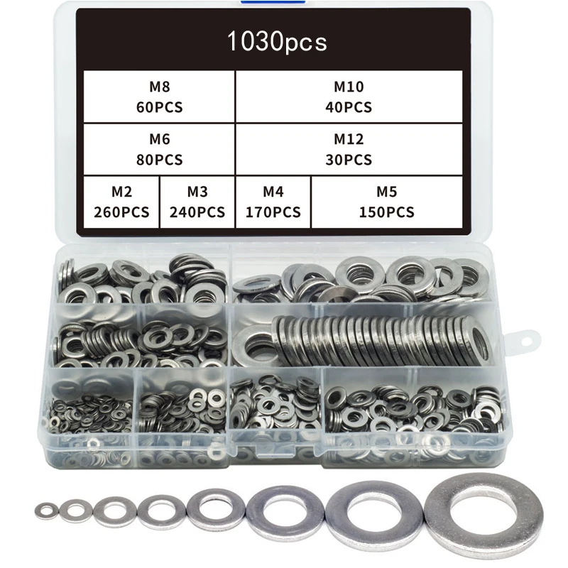 Набор плоских шайб M2 1030 из нержавеющей стали, M3 M4 M5 M6 M8 M10 M12 шт., металлические прокладки, комплект шайб для болтов