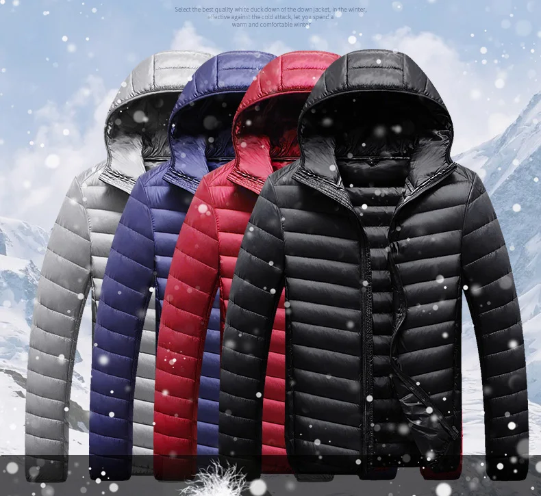 Куртка мужская осенне-зимняя короткая, ультратонкая, с капюшоном