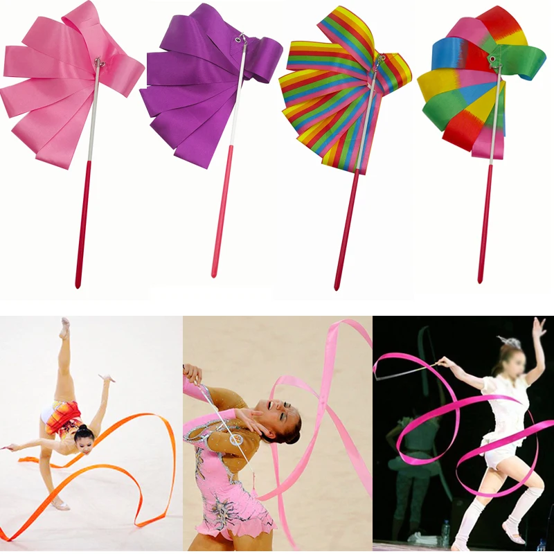 Гимнастические ленты, Красочные Портативные ленты 4 м для спортзала, аксессуары для танцев, радужные детские спортивные игрушки для девочек, ленты-стрейсеры 1 шт.