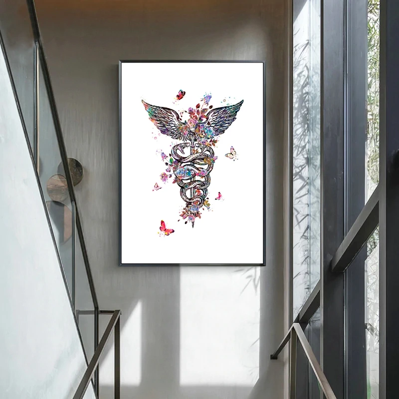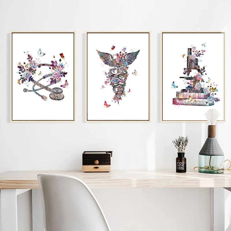 Подарок врачу медицинское устройство Акварельная художественная картина Печать на холсте стетоскоп кадуцеус микроскоп постер клиника настенное художественное украшение