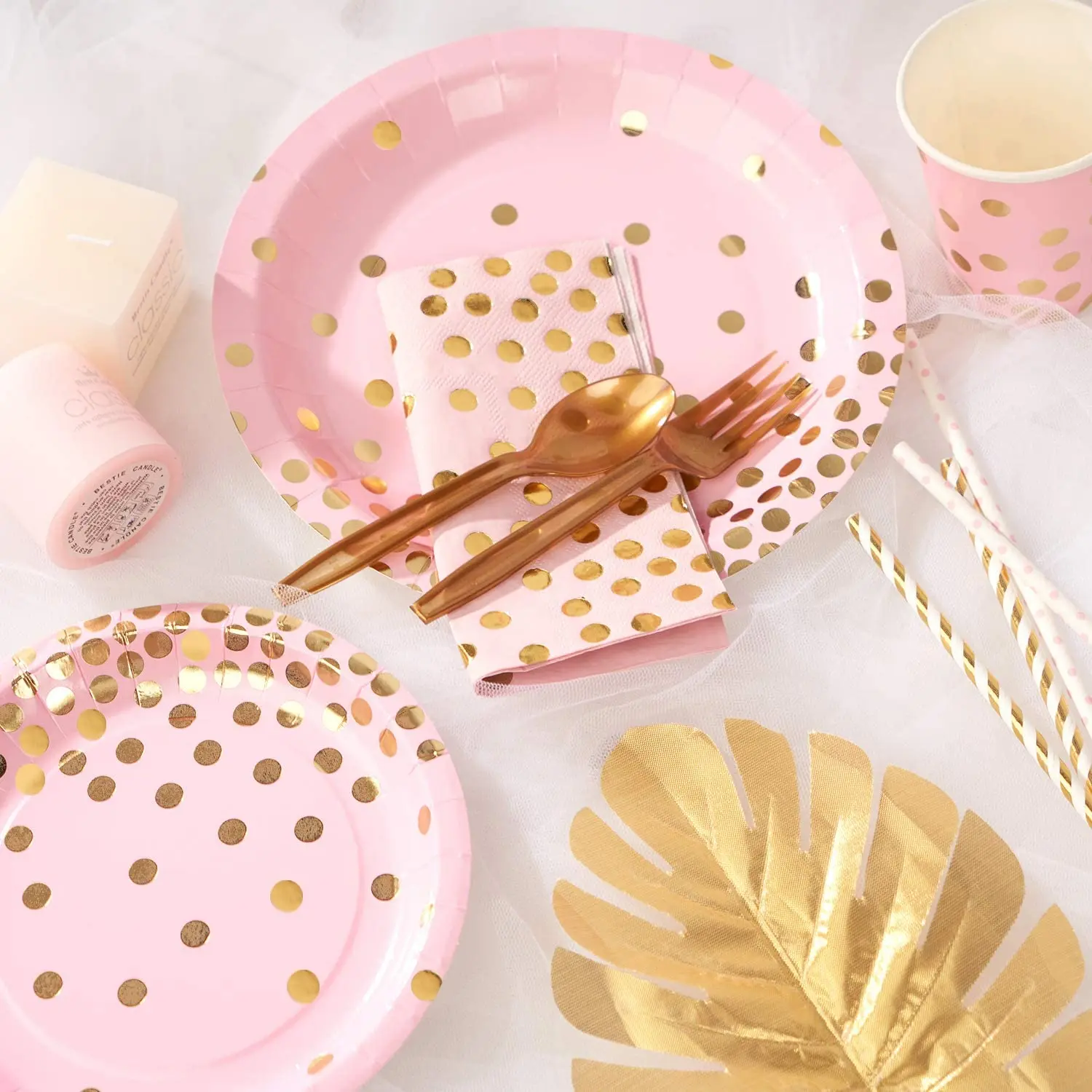 Свадебные Юбилей вечерние розового золота в горошек вечерние одноразовая посуда бумажный стаканчик, тарелка Декор для девочек Baby Shower вечерние поставки